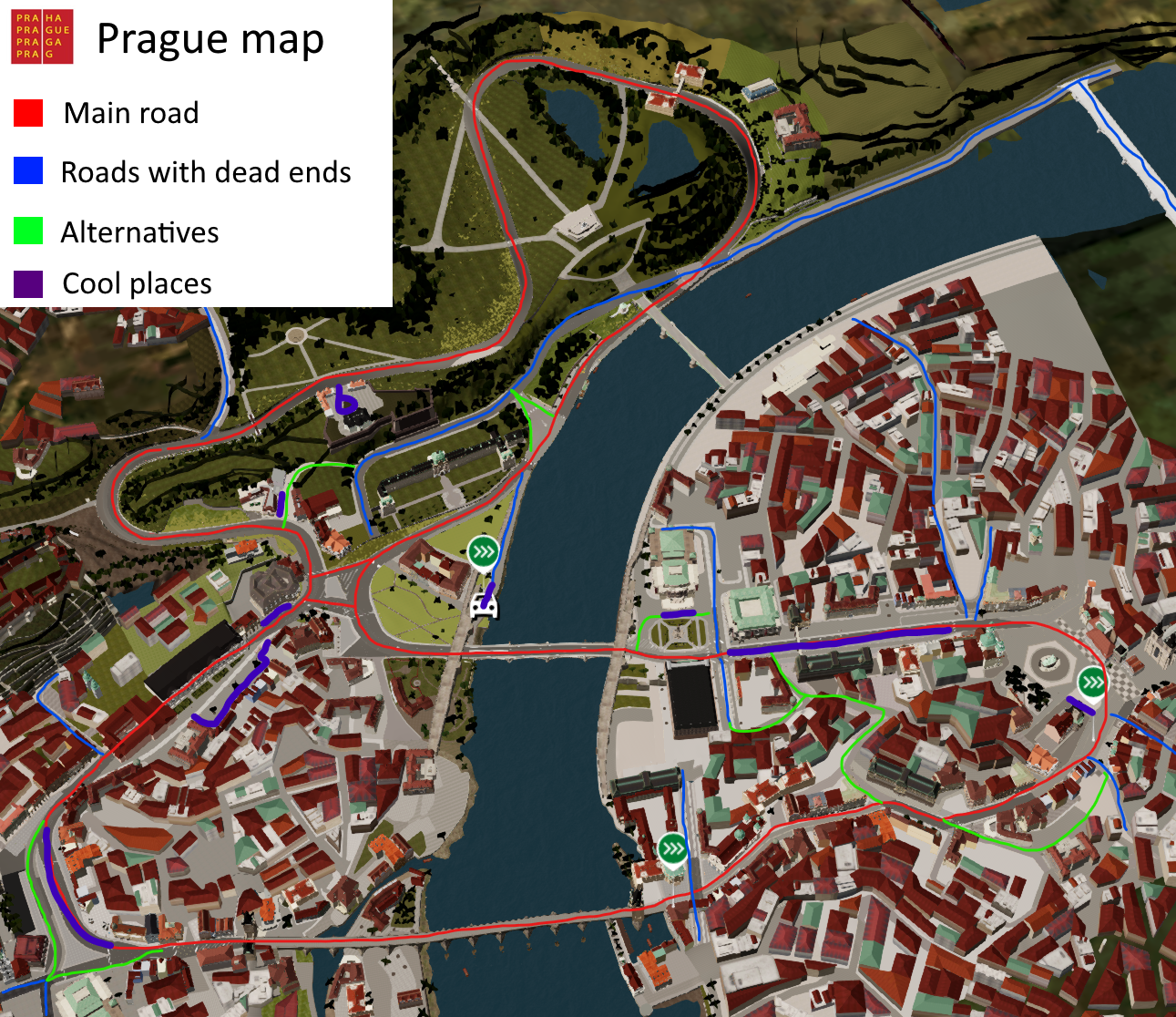 Never mind the fact that these are city streets; the maniacal AI drivers won't even illegally overtake on the correct side of the road, instead hopping the kerbs to pass you on the right! (This is not intended as a criticism of the mapmaker since I understand this map was mostly developed as a street circuit for racing, so fine-tuning AI doesn't need to be a priority).