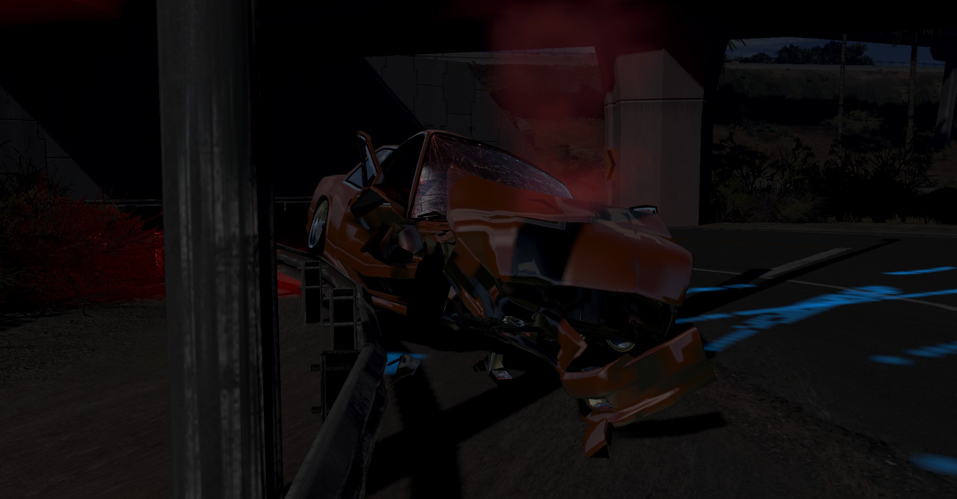 Case: Loss of control, May 4th 1975. Description: Kriss Dunwick 31 years old, was going on a joy ride after he bought the car two days earlier. He drove onto the highway, while driving, he tried to avoid a coyote crossing the road making him slam into the rocks that were placed on the median. His car flipped, and ended on the other side of the road. After hitting another pile of rocks. Injuries: Serious scars and wounds. Critical head injuries and a broken right foot. Vehicles involved: 1969 Gavril Barstow 353 V8 Roadsport Package (A) Location: Utah. Aftermath: Kriss recovered and the Barstow was scrapped. The coyote was never found or no signs of blood on the car. Kriss got a Bluebuck and never wanted to hurt his dream car again. Pictures: