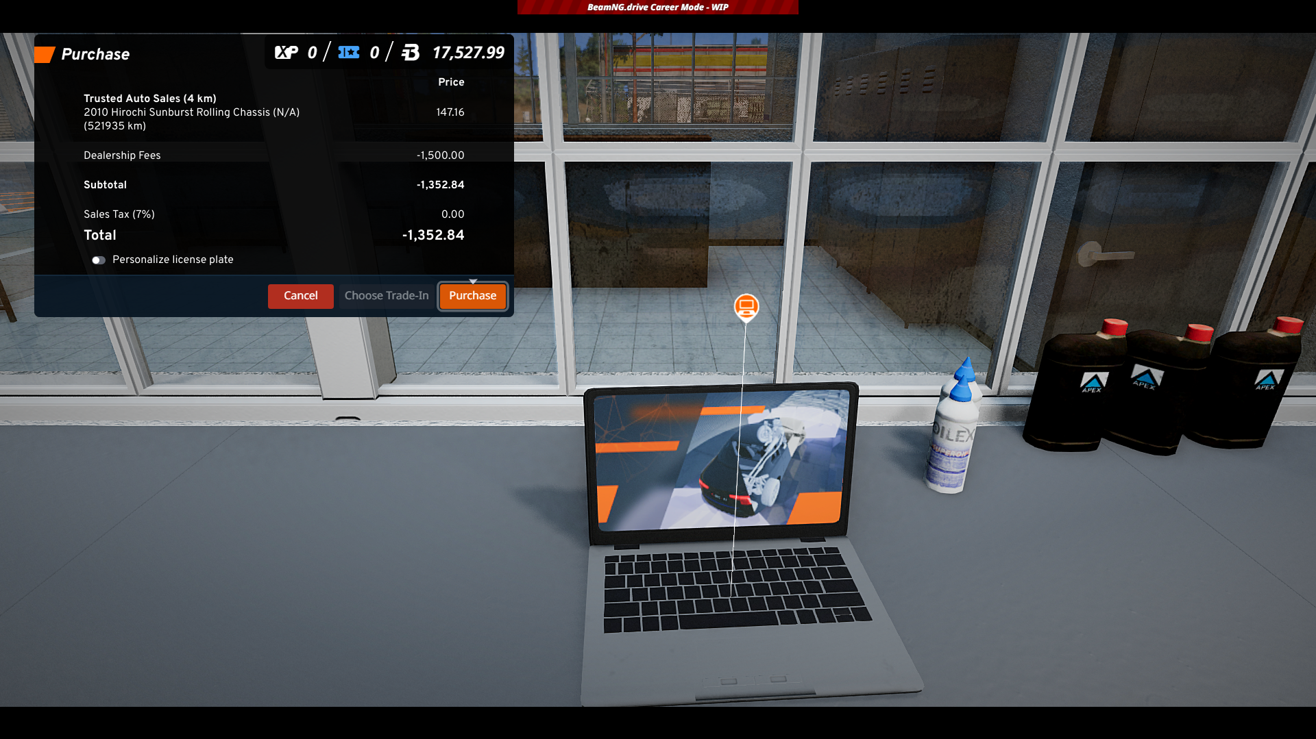The police are crazy aggressive ! lmfao, I hope you'll add the races back when you have the time ! We love my guy ! can the abandon cargo penalty be increased to say 50% of the current rewards overall ? I'm not chased, they're just there. Playing with a few 100 mods as well, all is good so far...lol BTW, can you explain the repair costs scaling ? I gotta pay over 4k atm. is it connected to the actual damage on the car as well ? (jbeam value of damaged parts) ? --- Post updated --- If you use mods, test with them off, and bring them in until you find the issue. I play with MANY MODS and had the same issue, but found my problem. --- Post updated --- Not sure if mod related but got this. After the error, some cars have negative dealership fees or everything is negative --- Post updated --- You gotta edit the valuecalculator.lua to higher values so we can't make a profit by selling our cars. The cars should sell for about 50%-70% --- Post updated --- The car prices need to be based mainly on the power then you subtract a bit with age/millage. But That should be the base. The negative numbers is a clean career, clean temp folder and single digit mods.