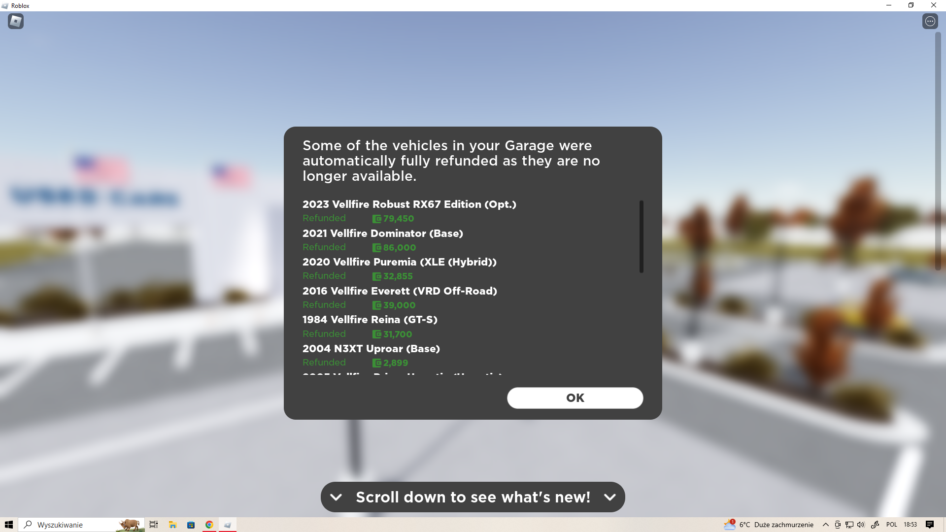 Pardon my language, but I'll say this as a Roblox member since 2013: Honestly, Roblox has gone to shit ever since Tix got removed in April 2016. It only started to go downhill from there when they became a multi-billion dollar company with their addition of animated heads at the expense of static heads, voice and video chat, Rthro, lots of bugs, errors, and glitches, very horrible optimisation to the point of not loading all assets and making games unplayable, the same shitty games, normalisation of online dating, and gambling. This is the reason I stopped playing Car Dealership Tycoon, because it felt so grindy, repetitive, and boring. Unlike most racing games, where you can save a lot of money for cars in minutes, saving money for a car in CDT takes from several days to months or even years. Not to mention, limited cars basically pressure you to play the game every day because, obviously, they're limited cars available only for a certain period of time, making it dangerously addictive and inducing the fear of missing out (FOMO), especially if it's a limited car from years ago. At this point, if Roblox keeps removing any more cars, then Driving Empire will become Walking Empire at some point.