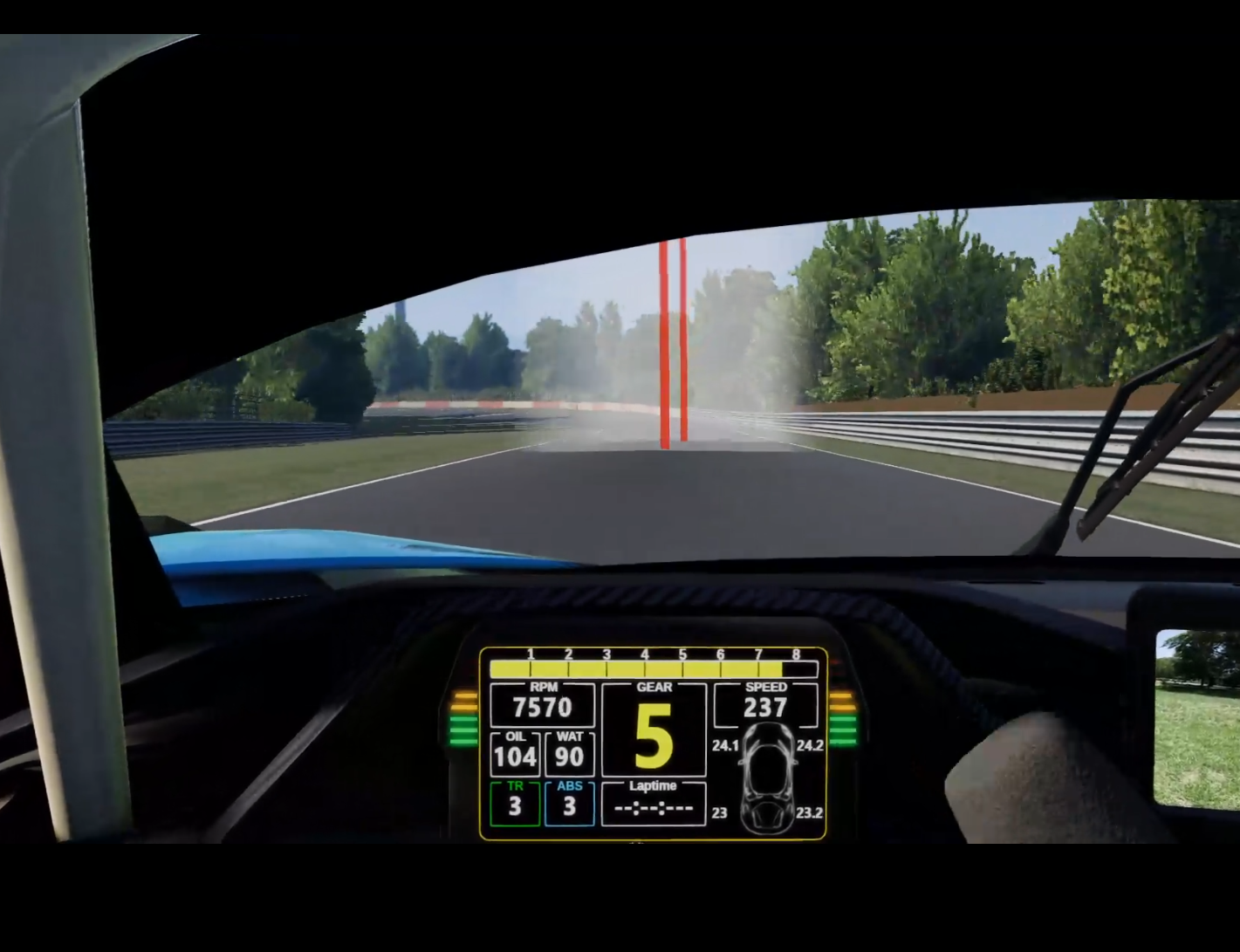 I would really like to have rear view mirrors for the cockpit view. Not even the video camera on the dash but just the normal wing mirrors because of, well that takes me to my next point...