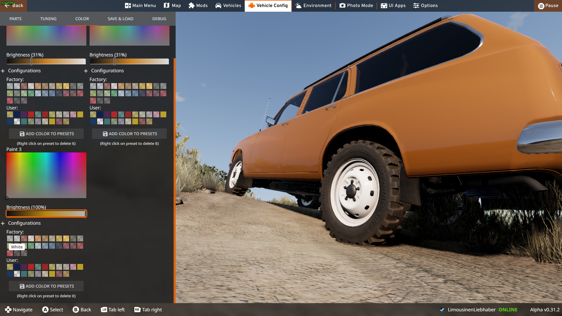 Wonderful cars, both of them! I really really find those to be a needed addition to the game! (because the Miranmar is so neglected!) Found only some minor things! - Rear Hatch of TAZ Zignet Wagon refuses to close after opening via action box: - Mirrors are very "floppy" as they jitter and shake after opening and closing doors as well as on higher speeds - When adjusting the Colour on "16x5 Steel Front Wheels (Colorable)" to darker colors, it seems like there is rust or something shining through: What I would love to see the most, maybe as inspiration: -More Smoke from the Diesel Variants (its the cleanest Diesel in all of Soviet Union) -Option for Jerry Cans and Spare wheels in a Cargo Basket (as in the Gavril Roamer for example) -Option for Trunk Loads with small Cargo Boxes -Option for higher Suspension parts (or Cut Fenders to make room for the bigger wheels) -Rectangular Rally Lights for the front Bumper -Rear Window Louvres -Deluxe Chrome Grill for Early Zignets -Tuning Carburetors Thank you so so much for this awesome mod!!! Greetings from Germany Alphaboomer