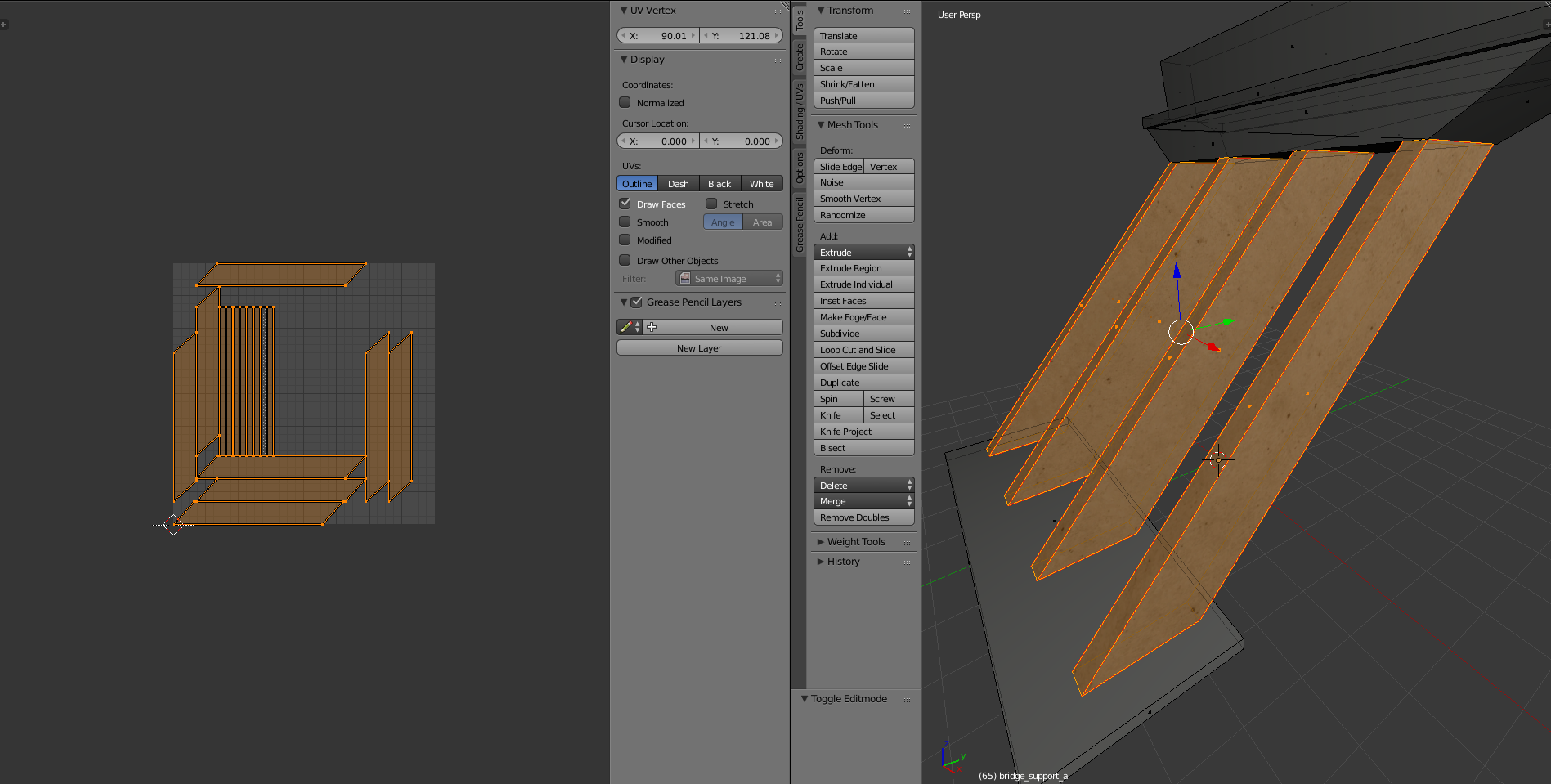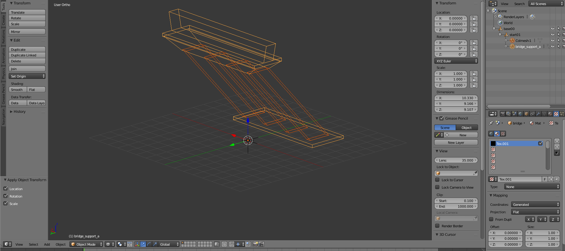Hmm, I don't know about import, I just drag dae exported from blender to template map folder (levels\template\art\shapes\trees), collision works with full model ok, but with collision model it gets shifted at least in X-axis, despite I have applied scale, rotation and location when selected both objects and origin is set to 0,0,0, probably something stupid I just can't realize. It works just fine if I keep model and collision model same, not sure about proportions of this thing, it might be you need to test it on map before textures are there. To blender template file I append the model, which seems to work, if imported it might not work. I did lower polygon count by remaking top part, so maybe it is not so bad if that part has collision too: Attached DAE has working collision, it just appears half submerged to ground, which it should not do when origin is 0,0,0, so whatever is the reason somehow location and scale does not get appended even I select them with ctrl-a or check boxes on left after that. --- Post updated --- Oh, that did turn out well, not! Without any sane reason one triangle did not get UV map, another attempt was even more horrible, ok it seems possible to get UV mapped object to game, but this requires few attempts to get right, but I hope that before sleep it is done and 5 support pillars version too, we will see how it goes