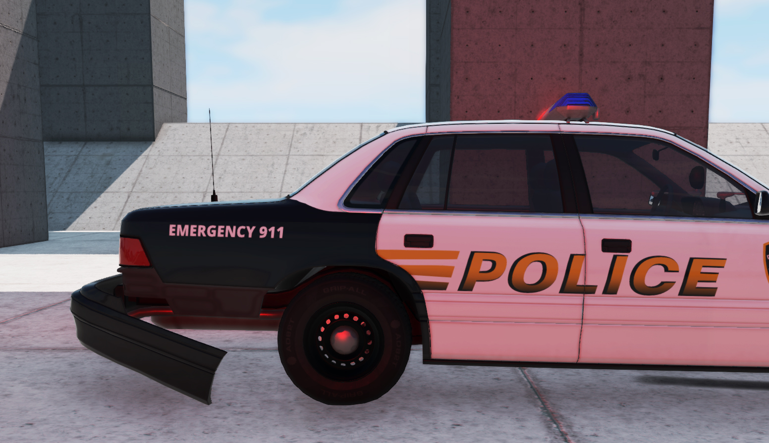 They could have spawned it partially in the ground for some reason, maybe so it looks better on the photo, because why would a random police roadblock car have a flat tire