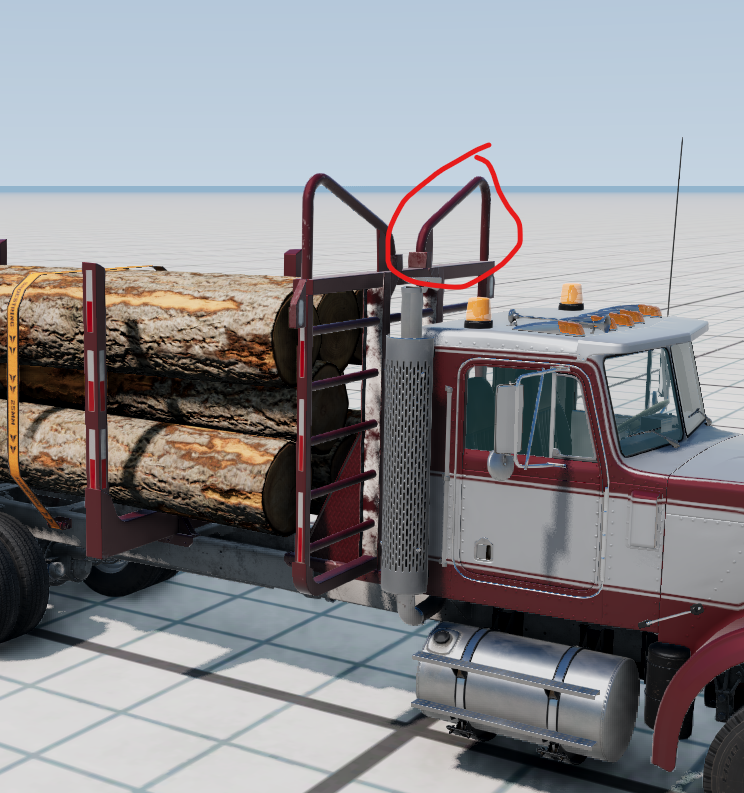 While I am speaking out of my area of knowledge here, from my understanding those pole trailers would be the period correct option for the T-Series; I think the double bunk type trailer we just got is more of a modern thing. Personally I'd love a folding pole trailer, they are really cool. I'm not sure if the headache rack's ears are really evidence for that though.. They are generally seen on logging trucks of that era but I've seen generic contemporary semi trucks with that style headache rack too; the team might just have wanted something quirky and period correct and ended up going with that style.