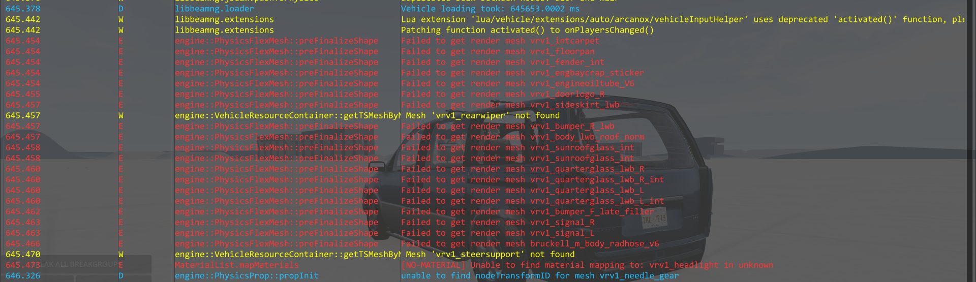I already did that a week ago Even after reinstalling, when its importing textures nothing happens to the roof, and nothing is in the console that relates to the LWB roof like its not even in the mod files. Also, no taillights, quarter glass, or other main stuff loads in the LWB config, as shown in the attached screenshot. If I install the mod in safe mode, then there are no wheels, badges are no texture, and the roof (which does load in) has a no material/texture on it.