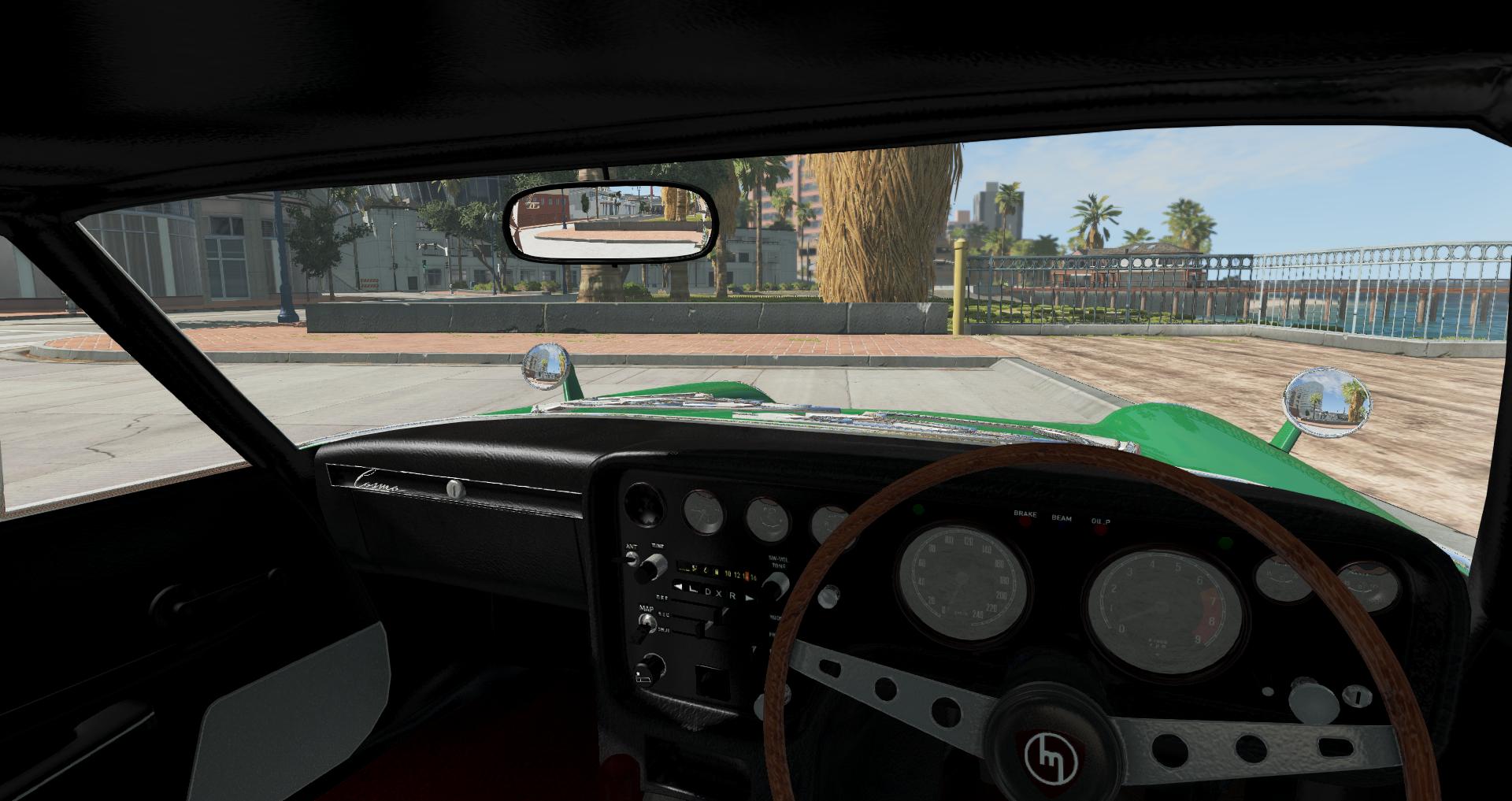 Just another night of subtle changes; The old steering wheel was bugging me with the asymmetrical hole placement, so I decided to spend the evening remodeling it. Old wheel (Yes it's a re-upload, didn't take proper before/after shots); New wheel; It now should be more like the real thing. Not perfect though, it's more along the lines of "Inspired by" instead; It's cleaner, narrower, and all said and done it just looks prettier. Additionally if you didn't notice, I used subsurf on the gauges and gauge surrounds to make them smoother, which I think goes well with the new wheel. Still need to reposition the needles btw. Also re-angled the upper side chrome trim to be more in line with the real car; Old (re-upload again); New; Again not perfect, though it's closer to how it should be. I basically lowered the back end of the upper trim piece a few centimeters, and realigned everything to match. I still think I modeled the side window either too skinny, or too tall, though this at-least helps ease the visuals, especially from the lower roof-line to the rear pillar curve. Additionally I re-did the trunk lid normalmap, apparently I originally did it inverted, which was creating the illusion that it was sunken in (Throwing off everything in the trunk area.) Now the normals texture is oriented the correct way, and the sore spot has vanished Finally, @atv_123 's found some time to help me with the suspension on this, so that also means that I'll be pushing an update out when he's done with that (Like I mentioned a few days ago.) More changes are still in the works, and more parts are planned too --- Post updated --- Just smoothed out the interior mirror; I still need to adjust the mirror surface UVs, that actually an easy fix... Just too lazy atm I'm also going through and fixing the specular maps (For the materials that have them, and making new ones where necessary,) plus downsizing some ridiculously oversized textures. This should help especially with the interiors overall appearance (asides from the fact that some textures were made initially too small, gotta try and fix that.) Apparently the old "common/null" method of mapping specular for materials is throwing off the visuals too, so I'm going through and replacing that as well. Also some extremely large unused files slipped in by accident, so those have been deleted... Should reduce the archive size by about 30-50MBs (No promises on the amount, can only promise a reduction.)