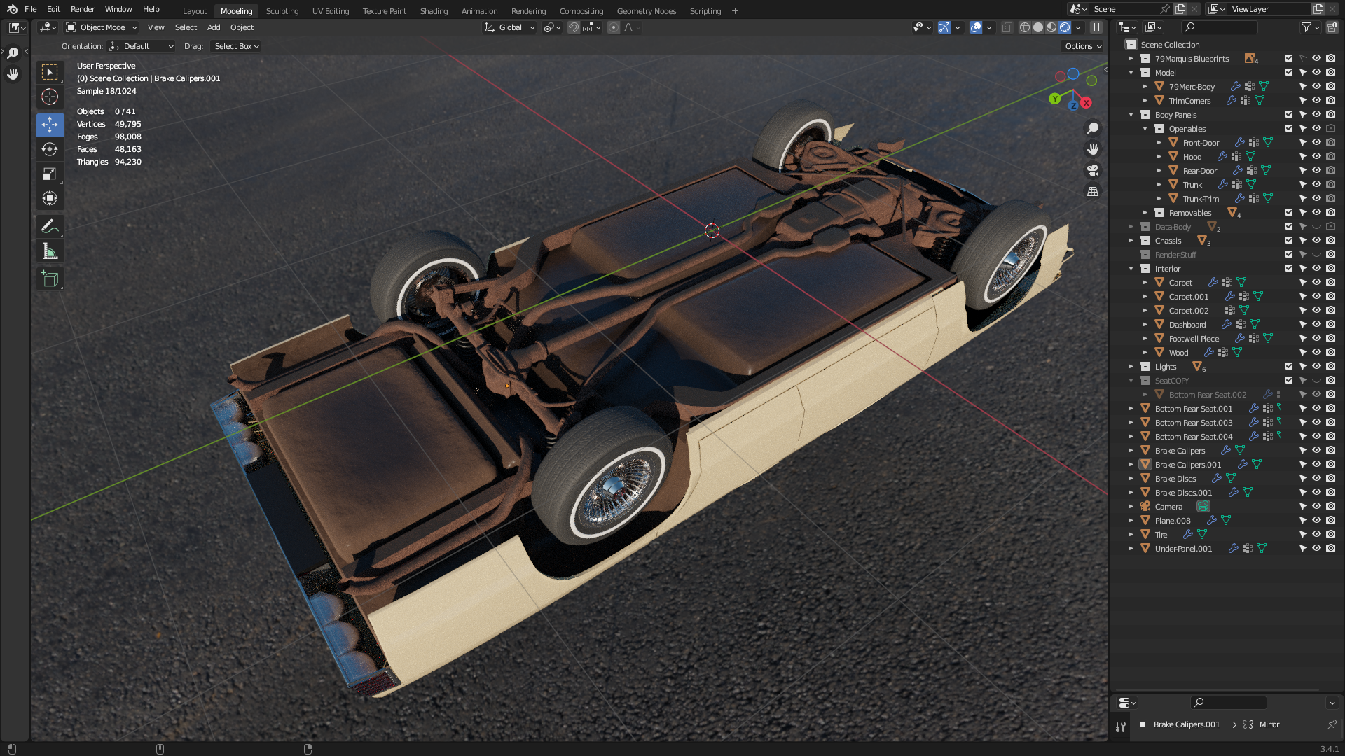 I reused the drivetrain and suspension details from the Crown Vic model I made. I'll add more detail at a later point but I think it's fine for now.