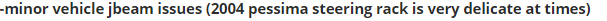 Hi, I was driving the 04’ Pessima for the first time and noticed an issue. I was parked in the back of the diner (the usual on West Coast USA) and backed up and turned left. I heard a crunch sound. I saw that the left front wheel had lost its ability to steer. I wish I could be able to show proof, but I can’t because I don’t have an extension.