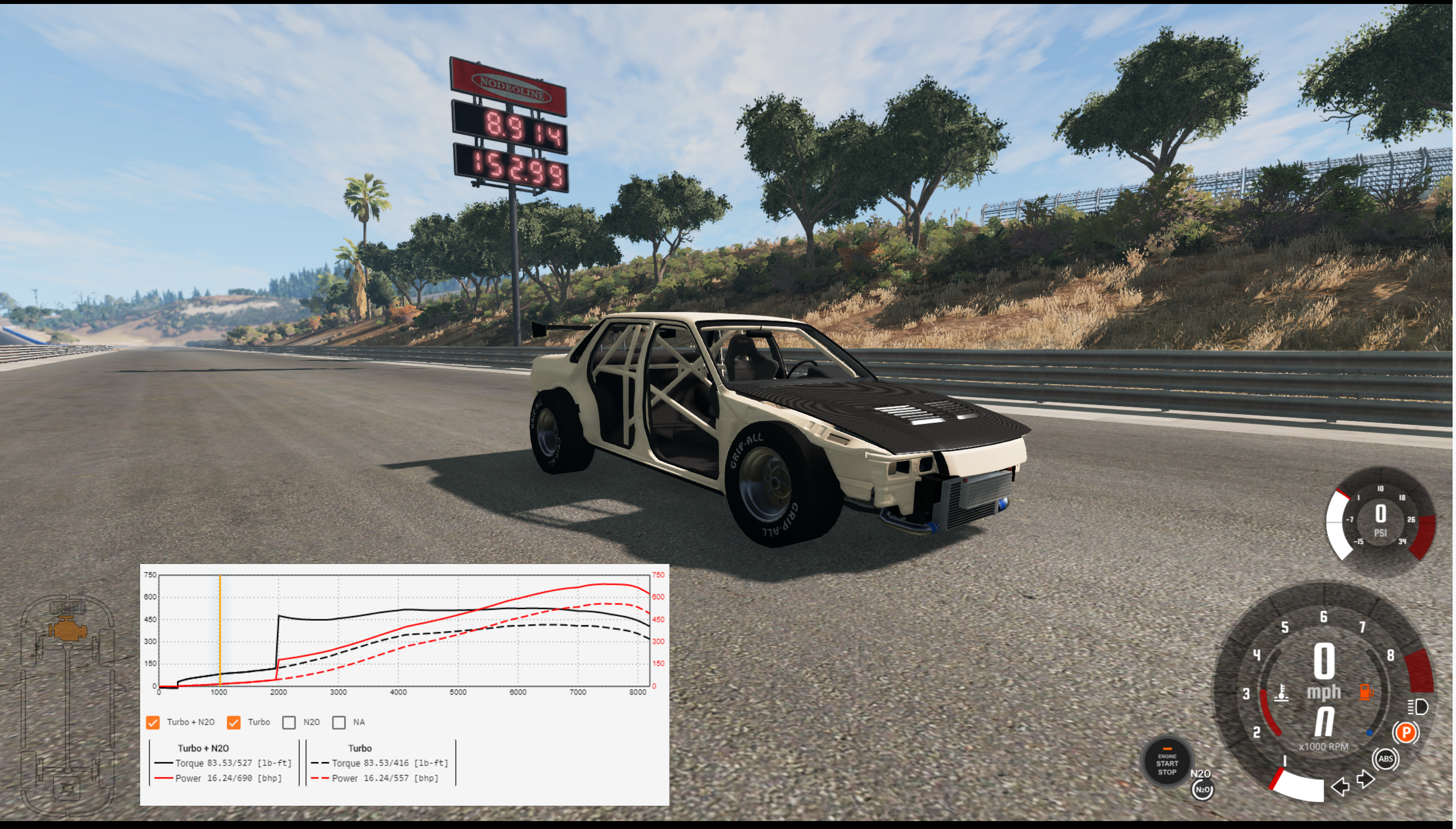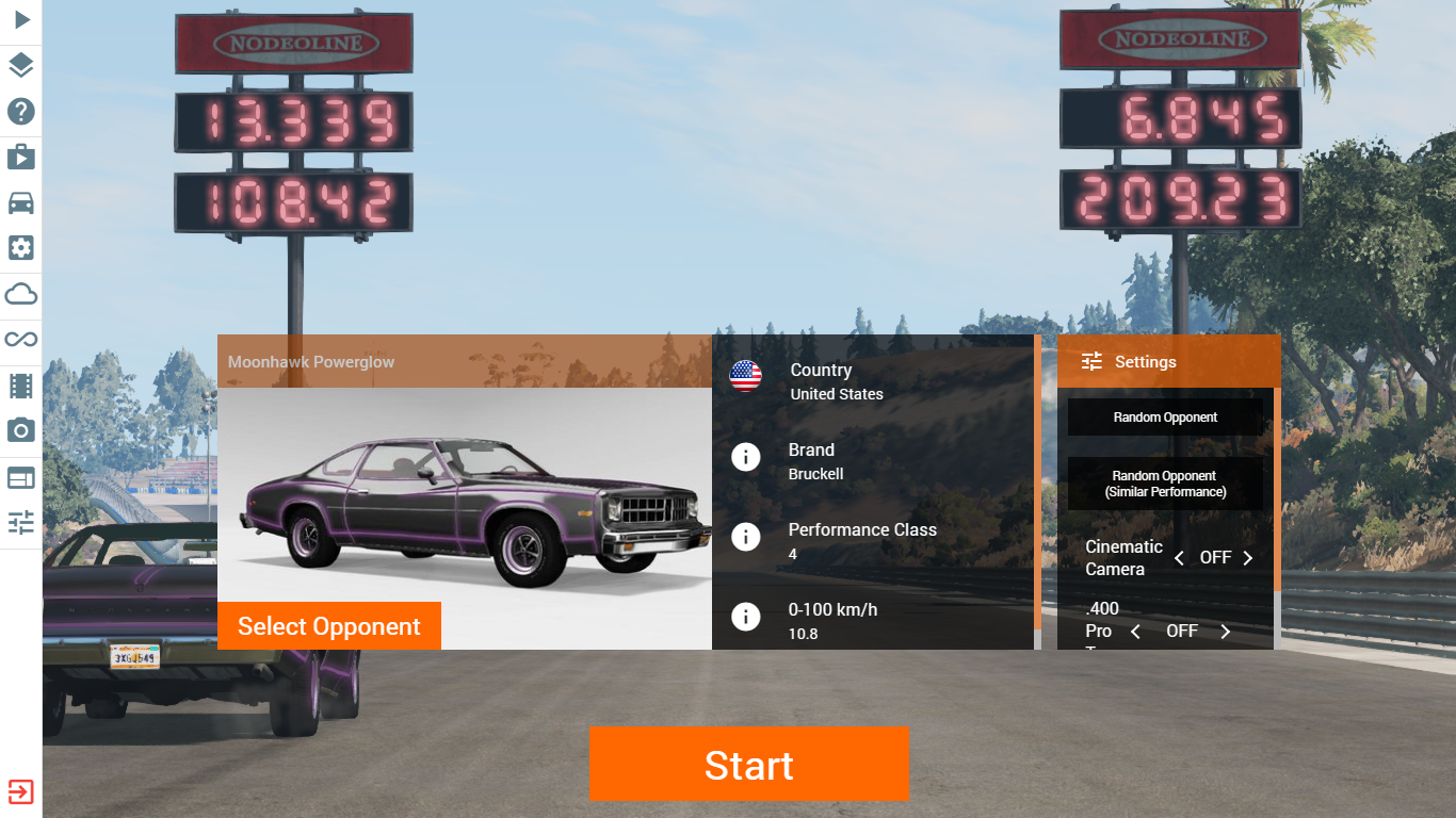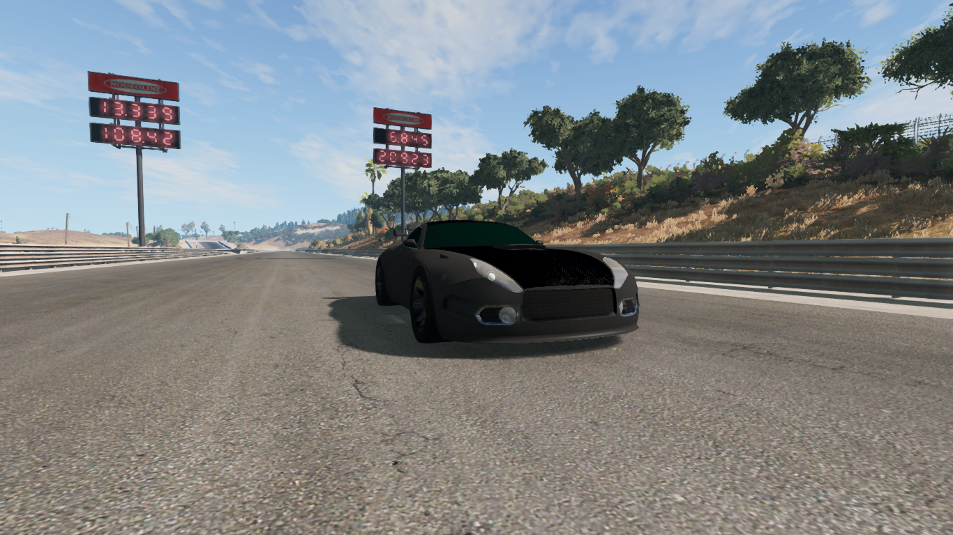 Car: Brucknell Moonhawk Class: Classic Sports Car Mods: Draghawk ProMod Chassis Mod, RK Custom Engine Pack, Meo Drag Parts, Aftermarket Transmissions ET: 5.555 @ 308.13 MPH My first submission after tinkering for about 6 months now. I'm coming for the "4 Seconds Club"