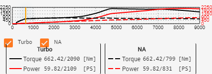 here is a submission for automation class 6.845 @209mph drivetrain: 7.8L v10 ,AWD, geared LSD and here is the torquecurve:-