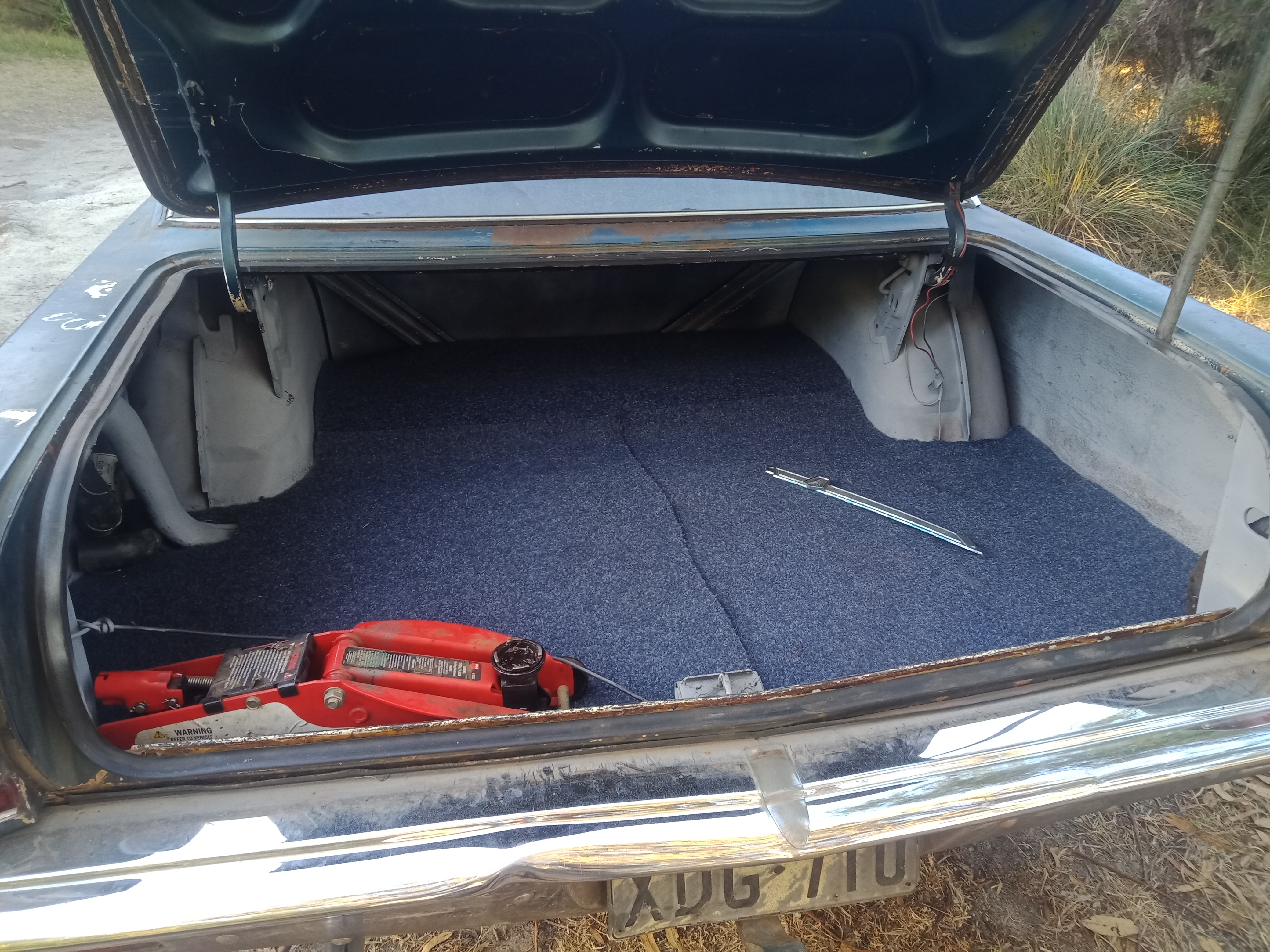 The car runs! The carburetor is tuned and adjusted (except for the choke) thanks to my Dixco Engine Performance Analyzer. Now I need to replace some line for the transmission fluid that’s leaking right onto the exhaust, causing lots of smoke. I need a new thermostat, headlight clip/adjuster, leaf springs, and an air filter. As well as a valve cover gasket! I also “detailed” the underfloor compartment and vacuumed the carpeting. Yes, this is a photo of mine.