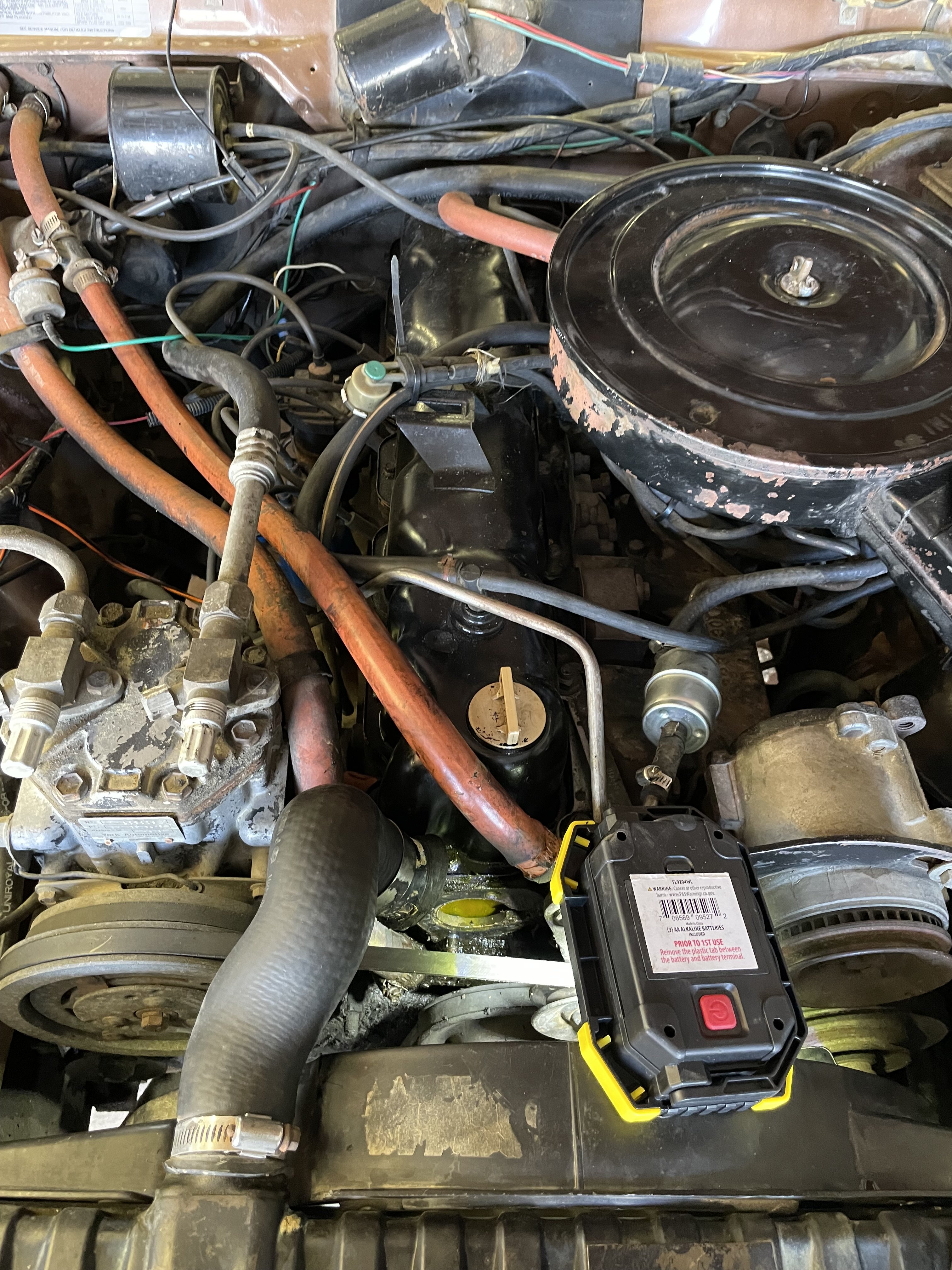 Okay, ignoring how stupid I sounded in the posts above this one, more car stuff! I’m currently replacing the thermostat (and associated gasket, which was very rotten). Once I get the engine cleaned off enough to read it, I will adjust the timing, and finally, charge the air conditioning. Stay tuned! Shown below: examples of engine cleanliness
