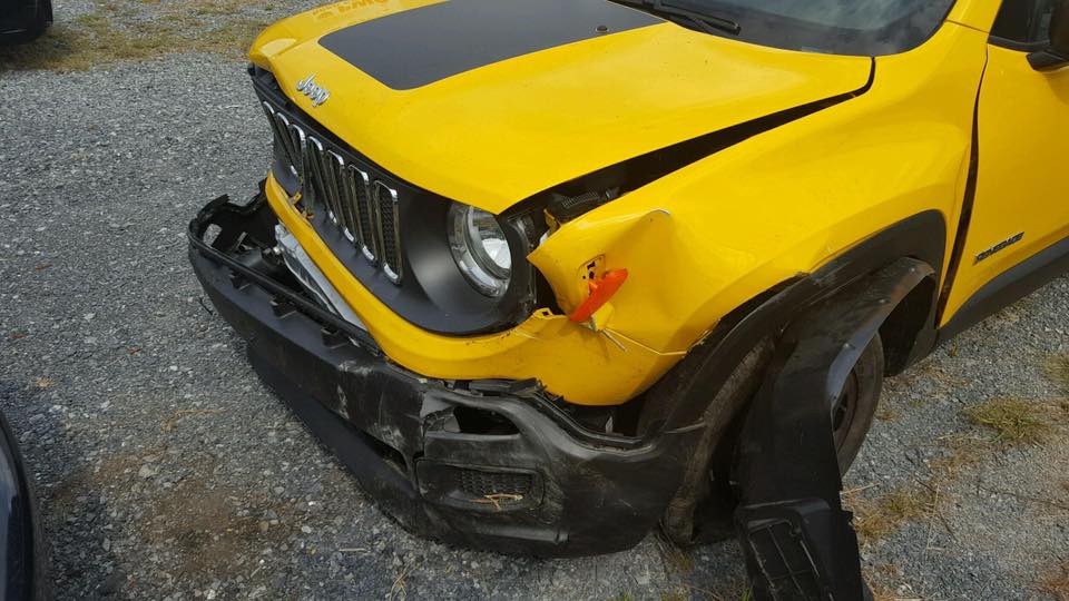 Yep, it took the recovery team took 45 minutes to get it out. I'm honestly thinking the frame might be bent, I know the engine fell down some, the rear driveshaft fell down some, muffler is hanging down, both front wheels bent, both front tires deflated.