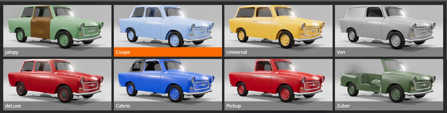 Kinda, it´s the pre-rework version, which never had an interior. So the legacy version won´t have one. It´s more like a fun version for screenshots, traffic, because it´s potato-pc-friendly and cruising around not-in-style. The legacy version config list: (I had to include a miscoloured and dented door) It might be, that the Pickup and the Cabrio body styles won´t be added in the reworked version, but there the overall quality will be massively improved!