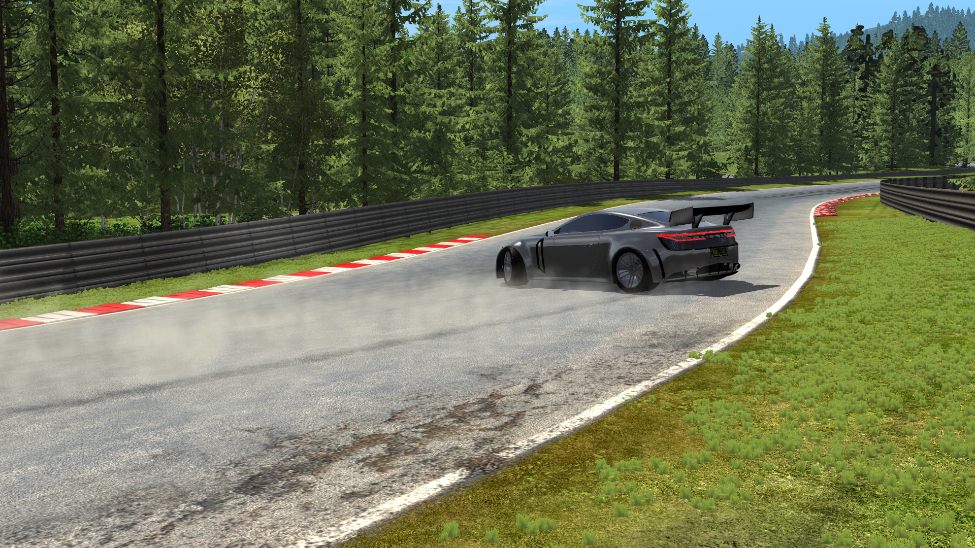 The Anton-Marthan BD12 AMR is a hugely powerful, stiffened, track focused variation of the BD12 with heavily modified suspension setup, semi slick tires, AWD connected to a 7 speed sequential transmission and a vastly upgraded version of the BD12's 5.5 litre twin turbo V12. Displacement is up to 6.0 litres with parts of nearly twice the quality of the BD12. Track focused aero dynamics also help the BD12 AMR to reach a maximum of 1.32g in the corners.