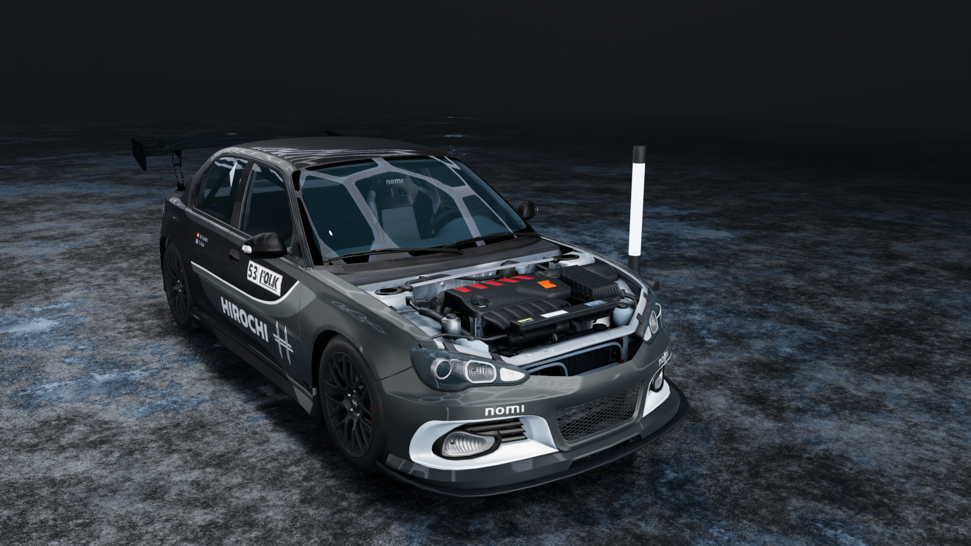 The exhaust doesn´t have an exit and its behind the rear bumper so you can only see the race exhaust