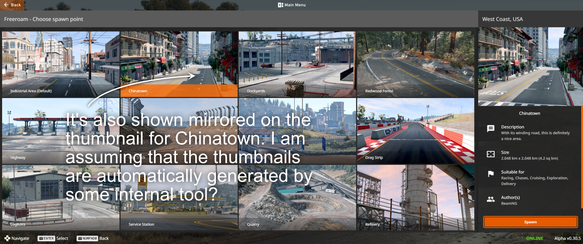 BeamNG_MirroredParkingSpaceMarkingsInWestCoastUSA.png BeamNG_MirroredParkingSpaceMarkingsVisibleInThumbnails.png