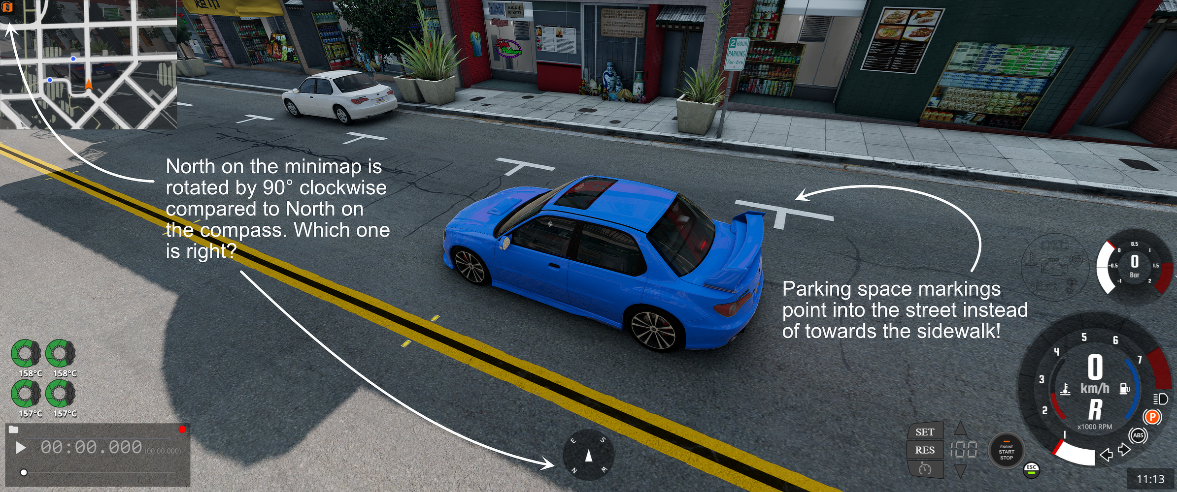 First, the orientation of North in both the compass and the minimap now differs (at least on the West Coast USA map in Freeroam) as visible in the first screenshot. Second, the parking space markings on West Coast USA seem to be mirrored, see first and second screenshot.