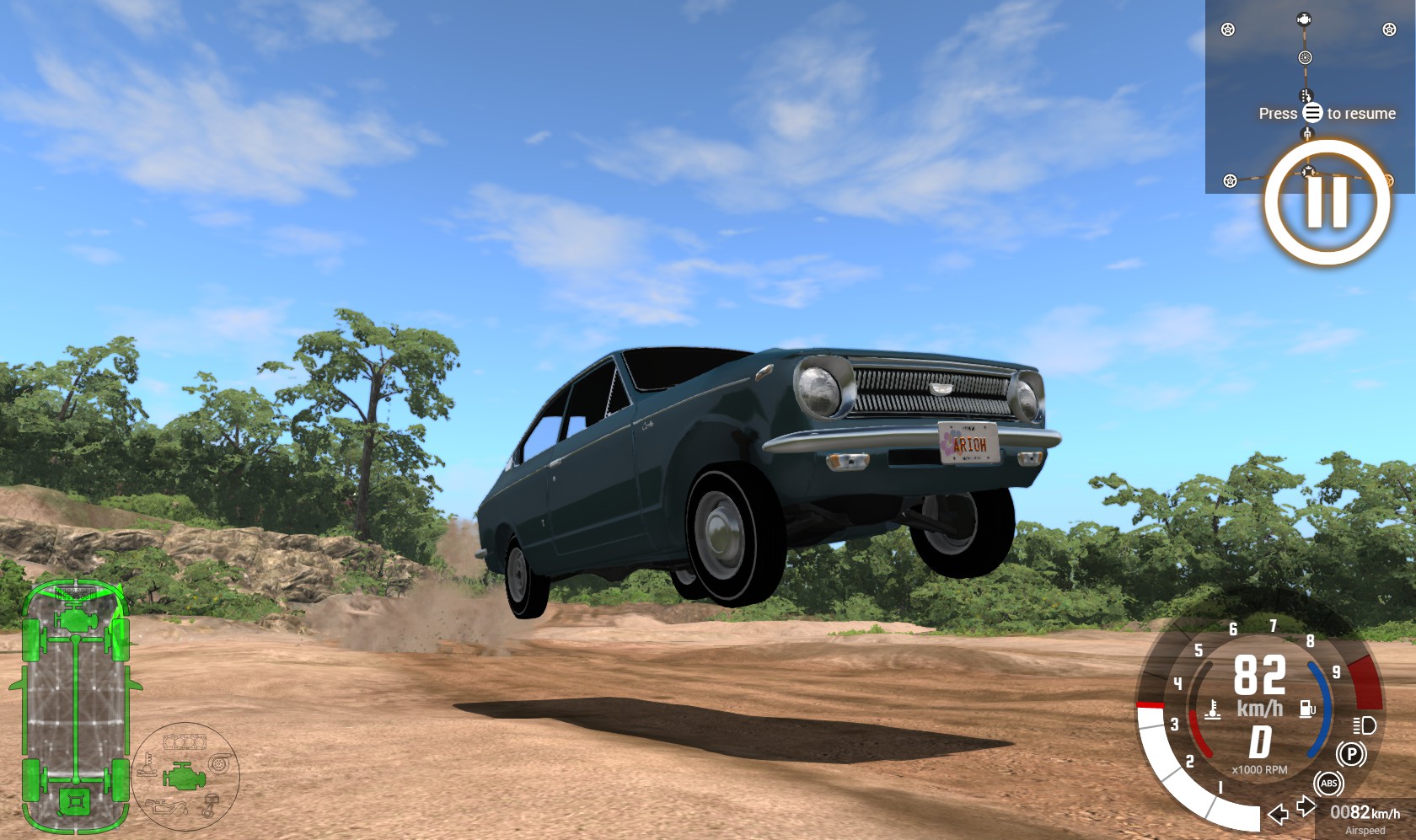 Actually over the years I have been upgrading the jbeam in tidbits. I put the latest version in the first post. No progress on the visuals, just updates to make use of new physics features. Shortlist: Converted to common wheels/pressureWheels, added: *TIMS Egota 13x6 (White and Black) wheel with 175/60R13 Sport Tire *165/65R13 Standard Tire for 13x5.5 Ibishu 5RS *175/50R14 Sport for 14x7 wheels *195/50R13 Sport for 13x8 wheels *195/50R14 Grip-All Race for 14x8 wheels *(the tire sizes are just guesstimates made to look good on the car) Converted to powertrain *functioning radiator, exhaust, fuel tank *added K50 5spd, a few more differential options *added race tune for engine (120hp! oh my) Added brake thermals, watch out for brake fade on those front drums *Added front disc option (no mesh change but less fadey) Revamped suspension jbeam with L-beam leaf spring design, true recirculating ball type steering geometry *Added some adjustable damping and stuff Minor fixes to triangulation, missing beams, etc etc Made a "race" config. Essentially a weekend warrior config, stiffer suspension, modded engine, 5spd, the biggest tires that fit under the fenders, front brake upgrade. Starts to overheat after a few hard laps, also quite possible to kill the front brakes leading to rear bias making things tricky. The car is light and darty but a bit vague due to the mushiness of leaf springs and recirculating ball steering. It can recover from a bit of a fish tail on corner exit but going in too hot and lifting is hard to recover from.