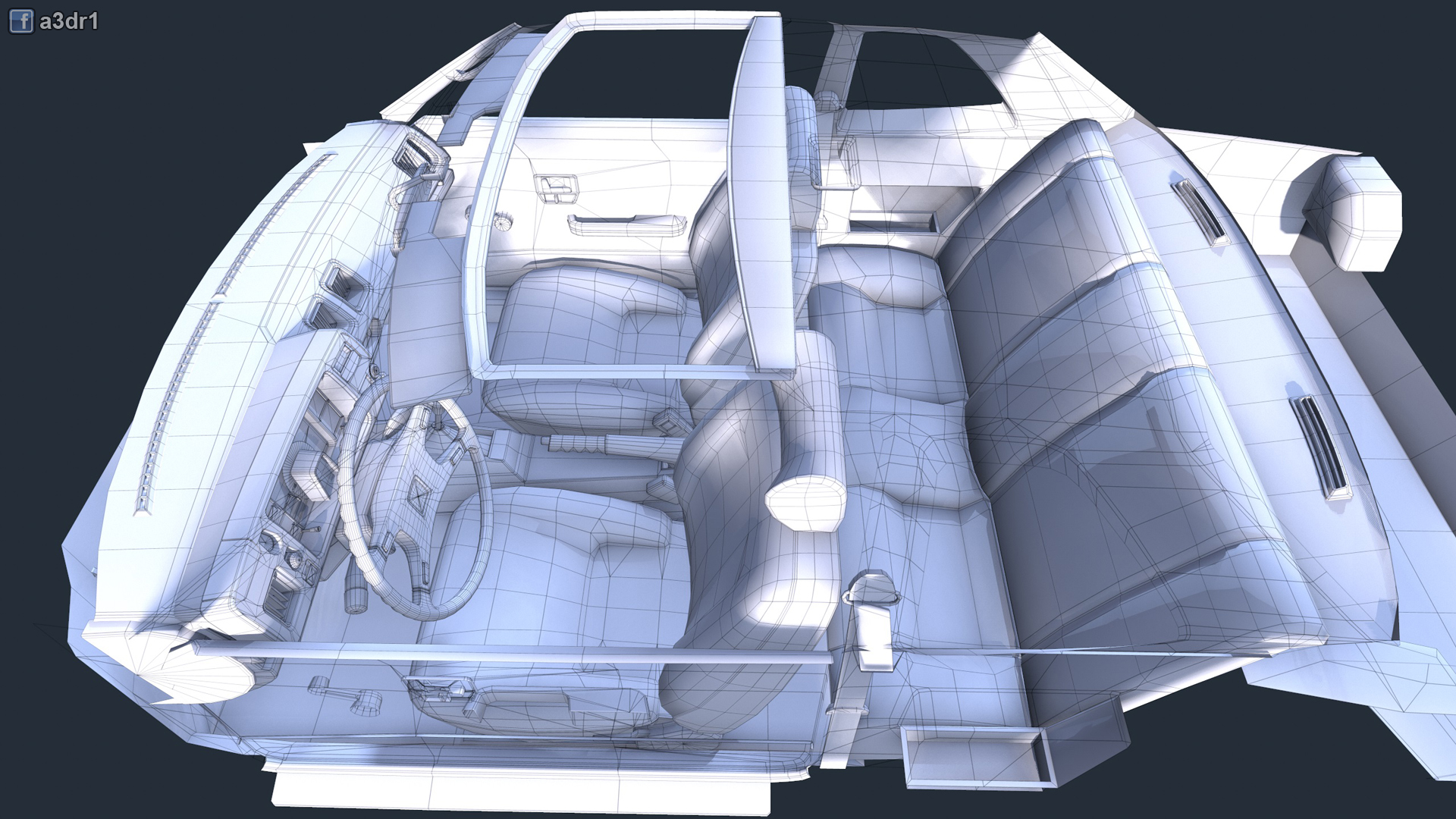Wonderful, the interior detail is just s it should be. Once you add textures and normal maps it will look spectacular in game. One thing to be aware of though, you should be cautious of using triangulated faces, especially long thin ones, as they result in unappealing shading (it's not as much an issue for an interior, as there is less reflection). Still, it's good to have a grid like model all over to avoid this, which you have managed do do rather well! A good technique is to use floating models/unwelded geometry (for fixtures like door handles and vents), such that you can ave a curved fixture, while having a square cut out in the background mesh, thus there are no long triangles to ruin your shading. Also, would it be possible to have a right hand drive version (perhaps a JDM model). Given that you already have the fender mirrors for it, it would be nice for those of us who drive on the left