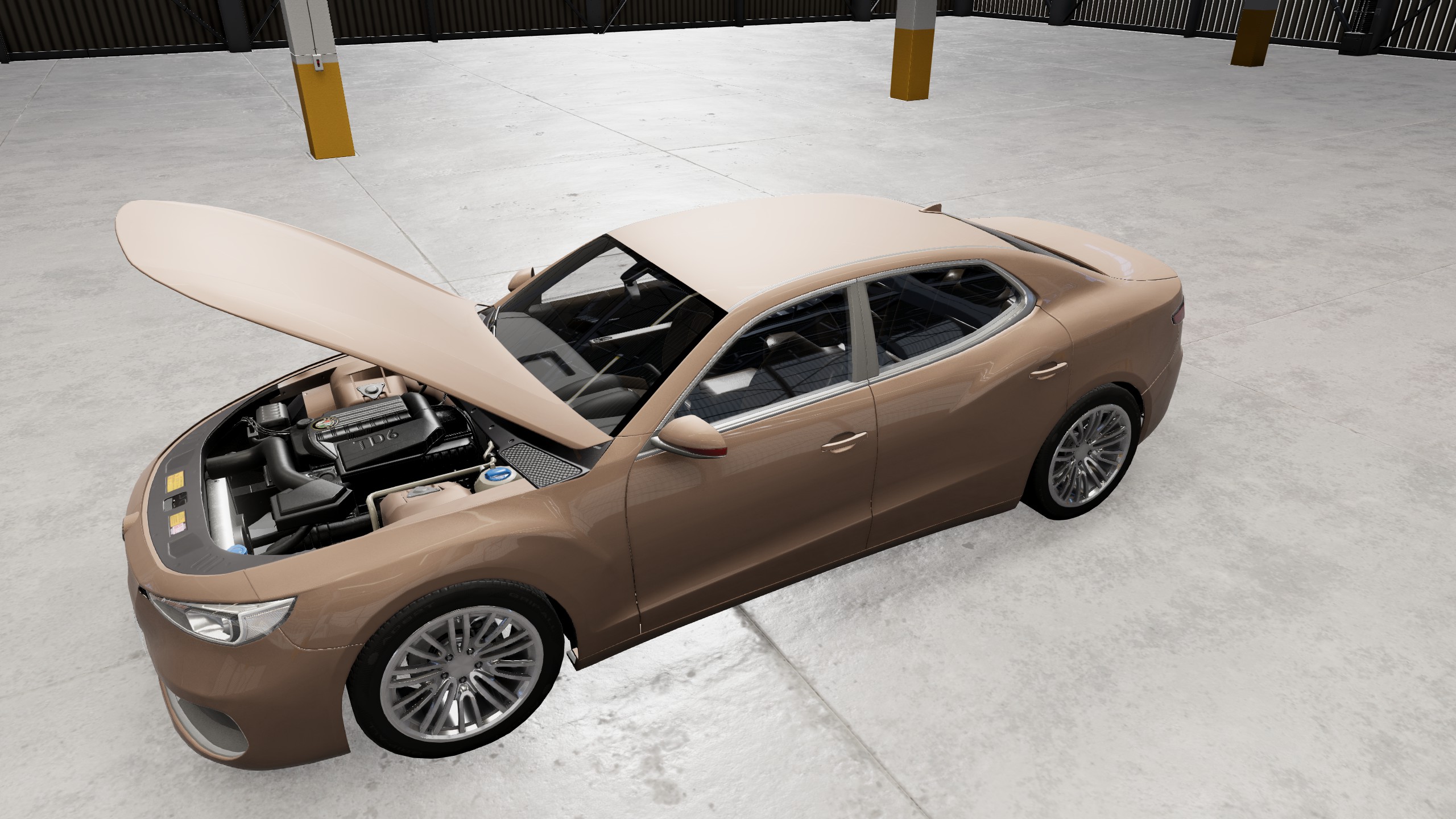 As you might have guessed from the automated post, above: Alpha 0.2 is live! In the meantime work progresses. I've implemented the inline six diesel from the ETK which I'm calling TD6. Here it is on the base luxury version. I've added a half cage option which together with a rear seat delete is now the default config on the GTxx (V10 TT) version: One thing I'm working on without a release schedule is moving the custom parts to the common folder and adjusting the jbeam files so that the Bastion and Rayonner can use them. Stuff like engines, wheels, half cage, stripped interior, etc.