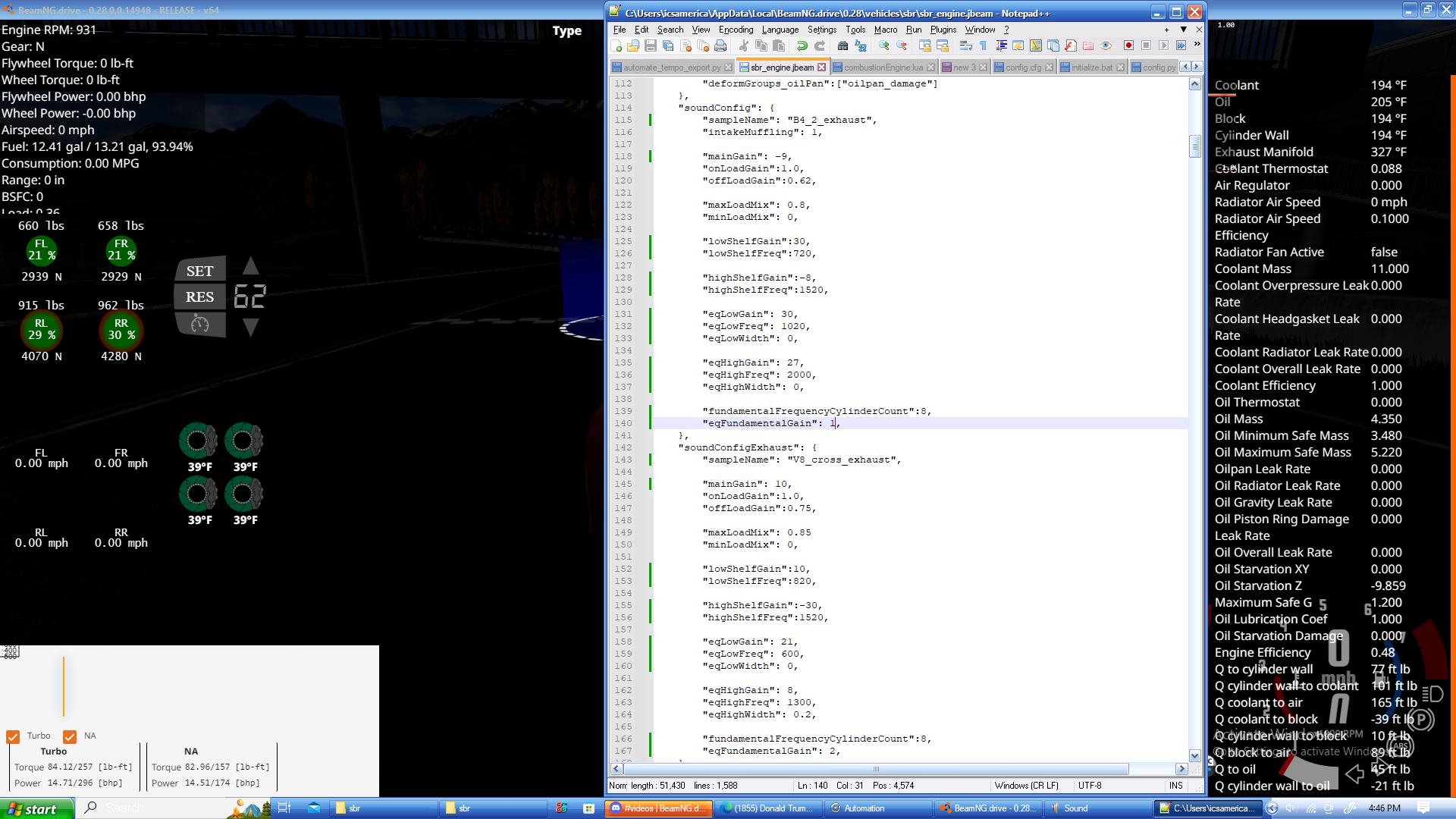 I put the fundamental frequency to 8 because I brought the B4_2_exhaust pitch up by *2 so it would be in the same octave as the V8. As far as the 30dB, I could probably lower that, but with all the other eq settings, it's the only way that I could get the V8 to sound the way I wanted it without having that annoying high frequency rasp/distortion or whatever it is as the rpms climb.