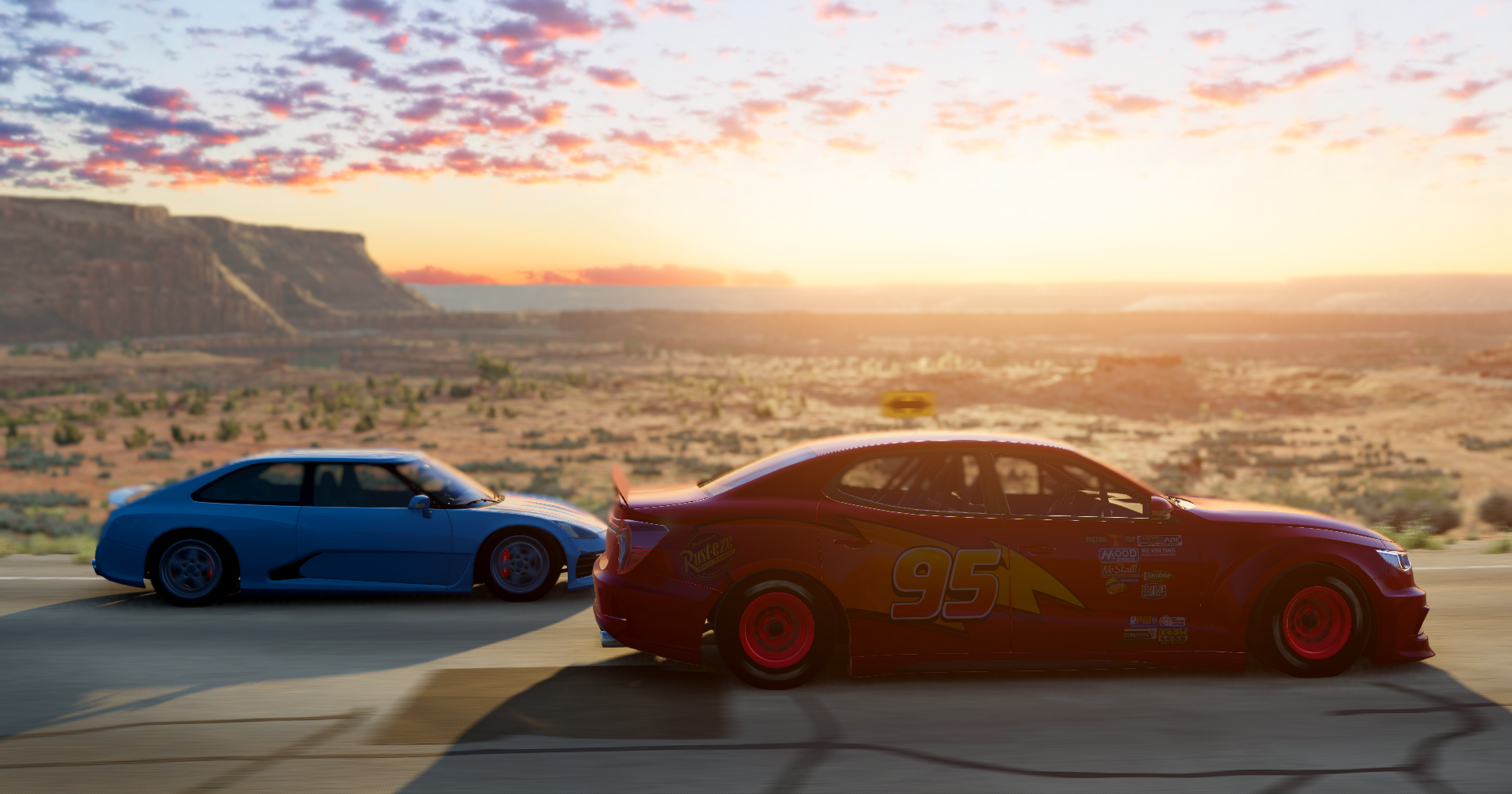 THIS PACK HAS A LOT OF JBEAM OR MATERIAL ISSUES THAT I AM EITHER TOO LAZY TO FIX OR CANNOT FIX MYSELF, DO NOT REPORT ANY ISSUES, I KNOW THEM ALL (I'm just lazy :3) Anyways... So, I had a thought. At 3am. What if I made some cars 1 stuff into Beam. Started off as one or two simple skins, then I kinda lost the plot and decided to add some parts and here we are. 15 cars at the moment, each having various skins and parts along with. I'll let the images speak first. Spoiler: Images of Greatness Each car has a config, not info.json however, if you include .pc configurations, then expand configurations, type in cars, and each of them will show up. The list of each car and part are: Piccolina - Luigi New body with his little hat/hair, it's adorable Bastion - Lightning McQueen Unjbeamed spoiler, red wheels to fit, custom livery Bluebuck - Ramone Lowrider Livery Bock - Guido - You need: https://www.beamng.com/resources/bock-b50.29874/ Forklifts and hat which are both not jbeamed, and a simple skin Burnside - Doc Hudson and Sheriff Custom livery for both, Sheriff has some additional siren things (idk the name but they look cool), curb feelers which are not jbeamed BX - Wingo and Mia/Tia Giant wing, underglow (from my BX pack), sun visor, vinyl roof, special pop ups, Wingo gets a livery Covet - DJ Subwoofer, wing, custom skin ETK K Series - Boost (arguably my favourite of the ones I've made) Custom wing, NOS tanks which do function (they clip through the trunk if opened so I made one which half doesn't open, need to still fix that), underglow, pink DRL headlights, custom skin Hopper - Sarge Chopped fenders, shortened bumper, custom skin (jbeam on the fenders needs adjusting, will do when I can be bothered) Stambecco - Red Red beacon lights, custom skin Moonhawk - Snotrod Underglow, custom skin D-Series - Tow Mater Custom skin only SBR - Sally Trampstamp, yes you heard it. I did it. This pack was made for fun, but later was made for a Failrace video, which did well, despite the fact Boost didn't drive that great lol, sorry Alex! Mods required: https://www.beamng.com/resources/bock-b50.29874/ https://www.beamng.com/resources/shadoss-200bx-pack.30575/ Credits Me - Majority of the work BeamNG - The cars, obviously @Inn0centJok3r - Letting me use some of the vertex parts for the tuners @Docroswagge - Subwoofer model that I was allowed to edit to work @LJ74 -Vinyl roof, curb feelers, some material and UV fixes for me @RenAzuma66 - Jbeam help, mental support Sketchfab and the Cars 1 game - Some models for characters (Luigis hat/hair, Sheriff's sirens, Guido's hat and forklifts Some videos, including my own Spoiler: Videos This pack has been a blast to make, and it may get some updates in the future depending on if I can be bothered.