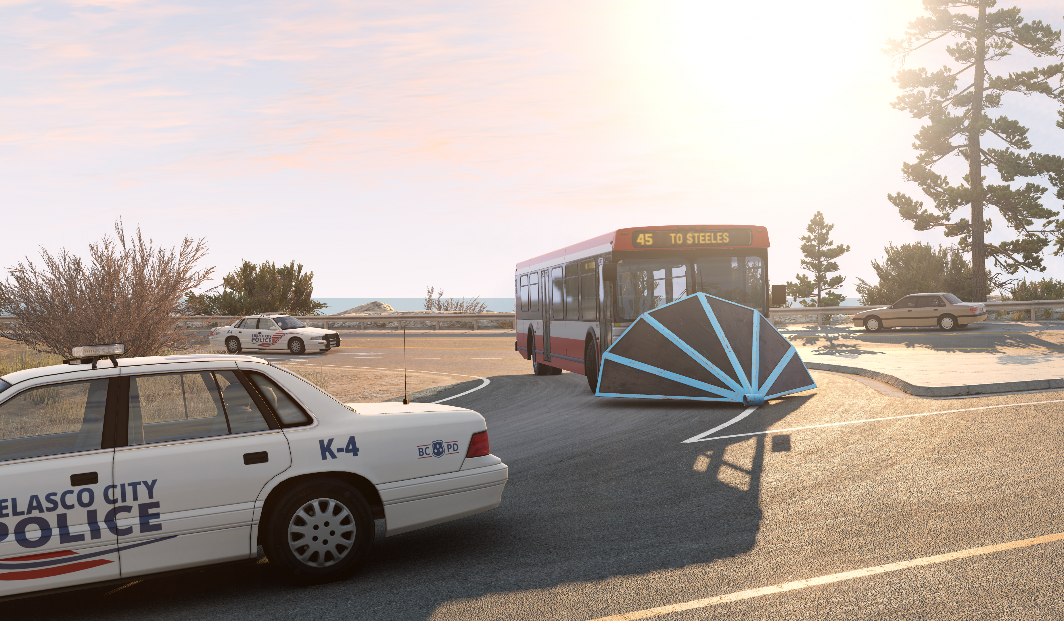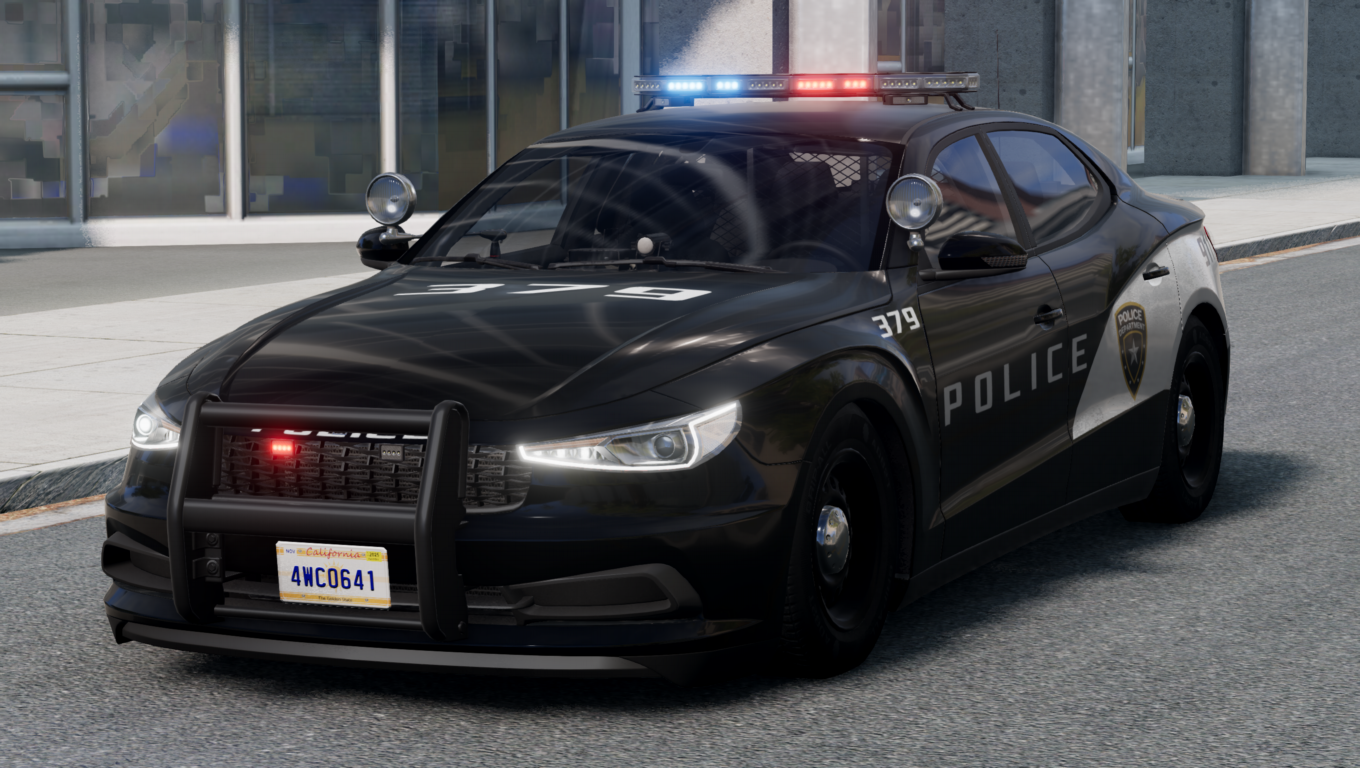 The complete marked Belasco Police fleet, the last 4 are custom (all Vanilla) --- Post updated --- Adding rear view of the 2nd custom BCPD Sunburst (+ my new default, an old Miramar pickup with shocks removed to replicate the old cars used suspension)
