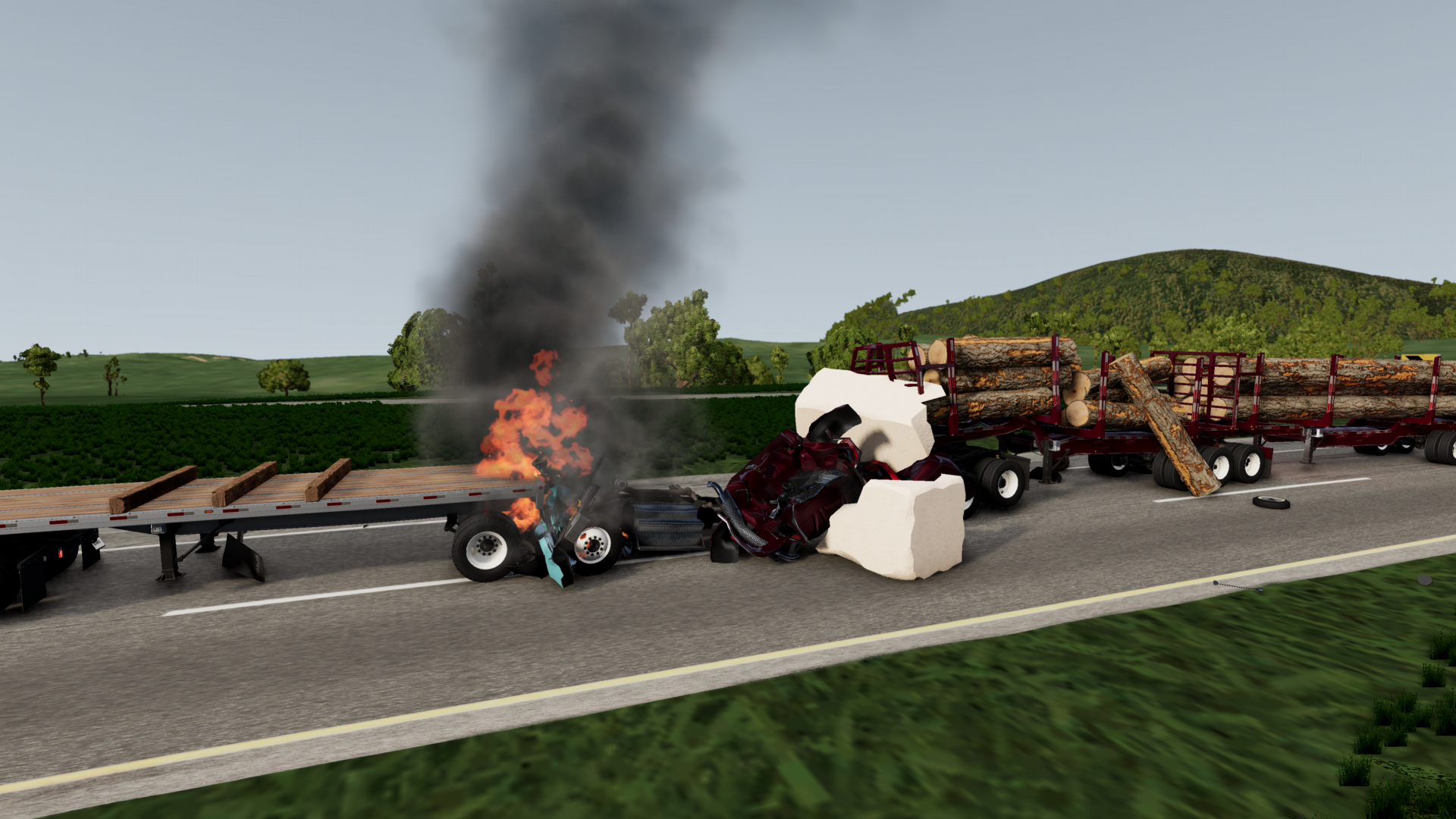 A few highlights from a few demolition derbies I did last night. Also, BeamNG needs more destruction derby/banger racing scenarios, those are always very fun, and they have so many tracks that just go unused for those kinda races!