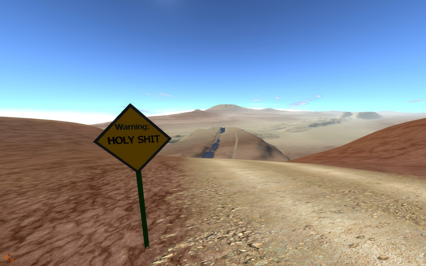 Re: Desert Highway Update Coming! December Done. Bridge is wildly normalized now! River has been...normalized-ish............it's better for lack of better terms BTW with the bridge, I'm sorry, that thing was ridiculous. I'm shooting for realism now (minus the 'oh shit' sign Oh look, an airport: <-There's even a hangar! Oh look, road signs: <-Workshop Model <-Mine Sketchup models are a 50/50 split between my creation and from the workshop. My models are a bit noticeable , yeah, I'm a modeling novice lol Update: Soon, maybe tonight!