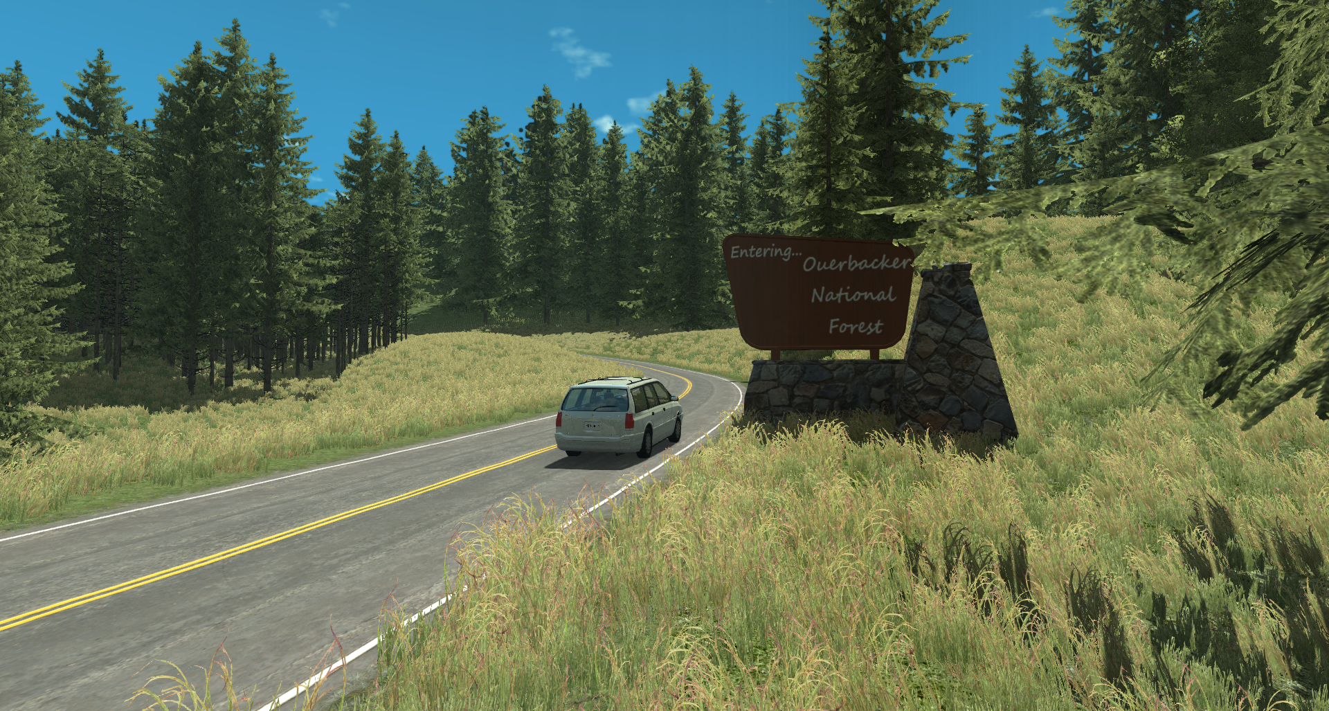 First static object I've made since 2015; It's not that great, I just threw it together to get a feel for making and importing stuff. I still need to test it as a forest object to make sure I don't get any weird crap going on there, then from there I guess it's higher quality stuff It's ultra low poly, I'm going to try to keep these new assets as low poly as possible, while still maintaining as much detail as possible.Though I'll be aiming for some more model detail The road texture is temporary, it's missing the middle dashed line and the median side color is wrong, but you get the idea. I was a bit worried we were going to have some "can opener" shenanigans, though it doesn't look like we'll have to worry about that here... Maybe somewhere else