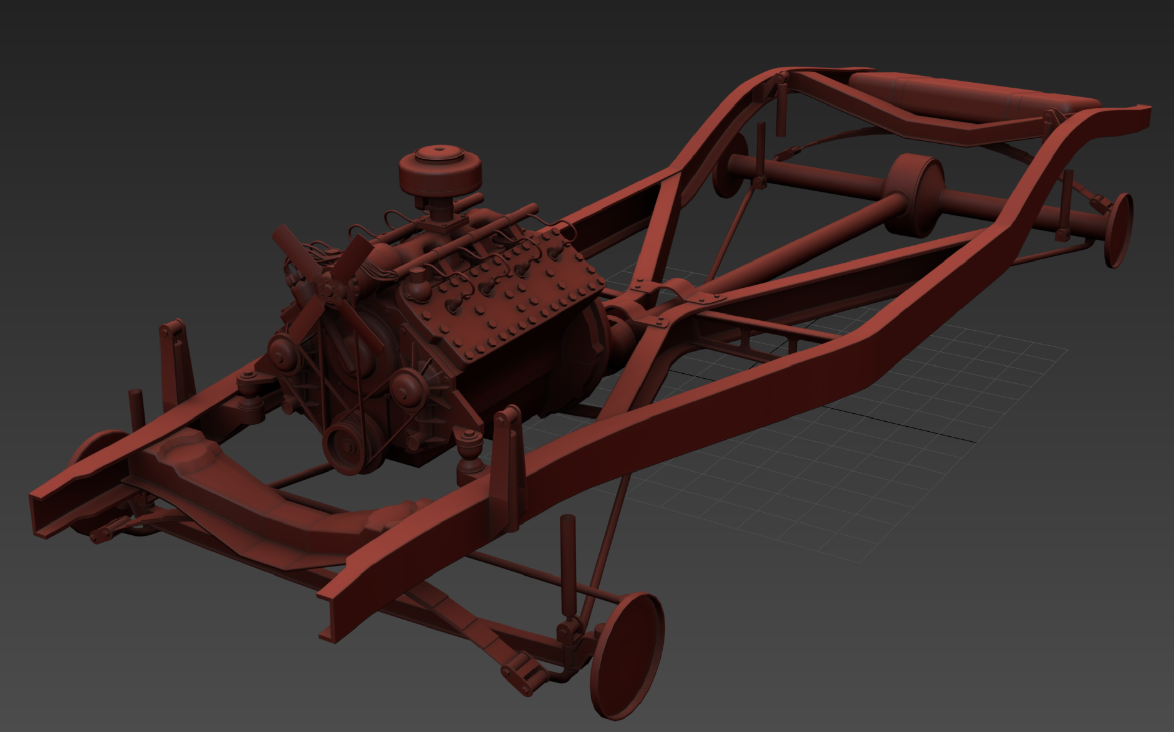 Most of the modeling on the engine is done, hope to have most of it textured and ingame for next week`s update video :)