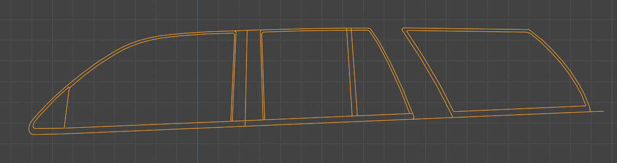 So at the same time I decided to start over on my SUV project, I also found what I think is a somewhat better initial workflow: tracing a shape that I'll fill with polygons later on, which I'm pretty sure is how the devs started creating the Vivace. This means I can start virtually anywhere I want, so I did the side windows first.