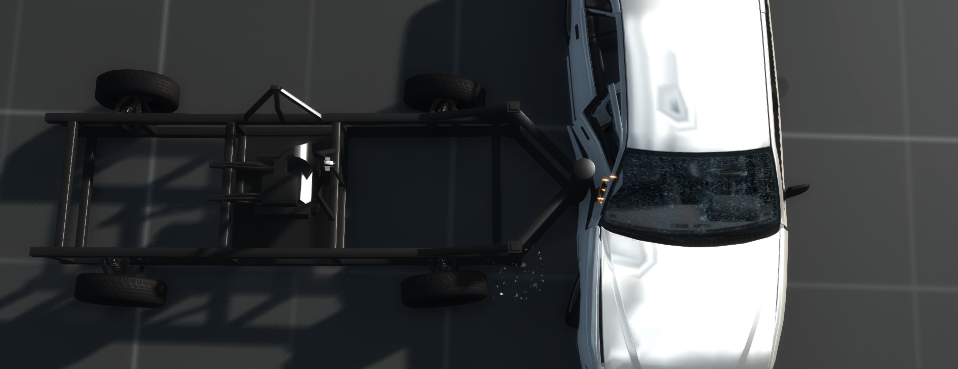 That's a 'full-trailer'... The flatbed trailer is going to be a full trailer. This is what I'm atm trying to create. (the drawbar isn't visible unfortunately) (source: wikipedia.org) --update-- nevermind, I just found trailers like these have a strong, solid drawbar with should cope with the moment caused by braking.
