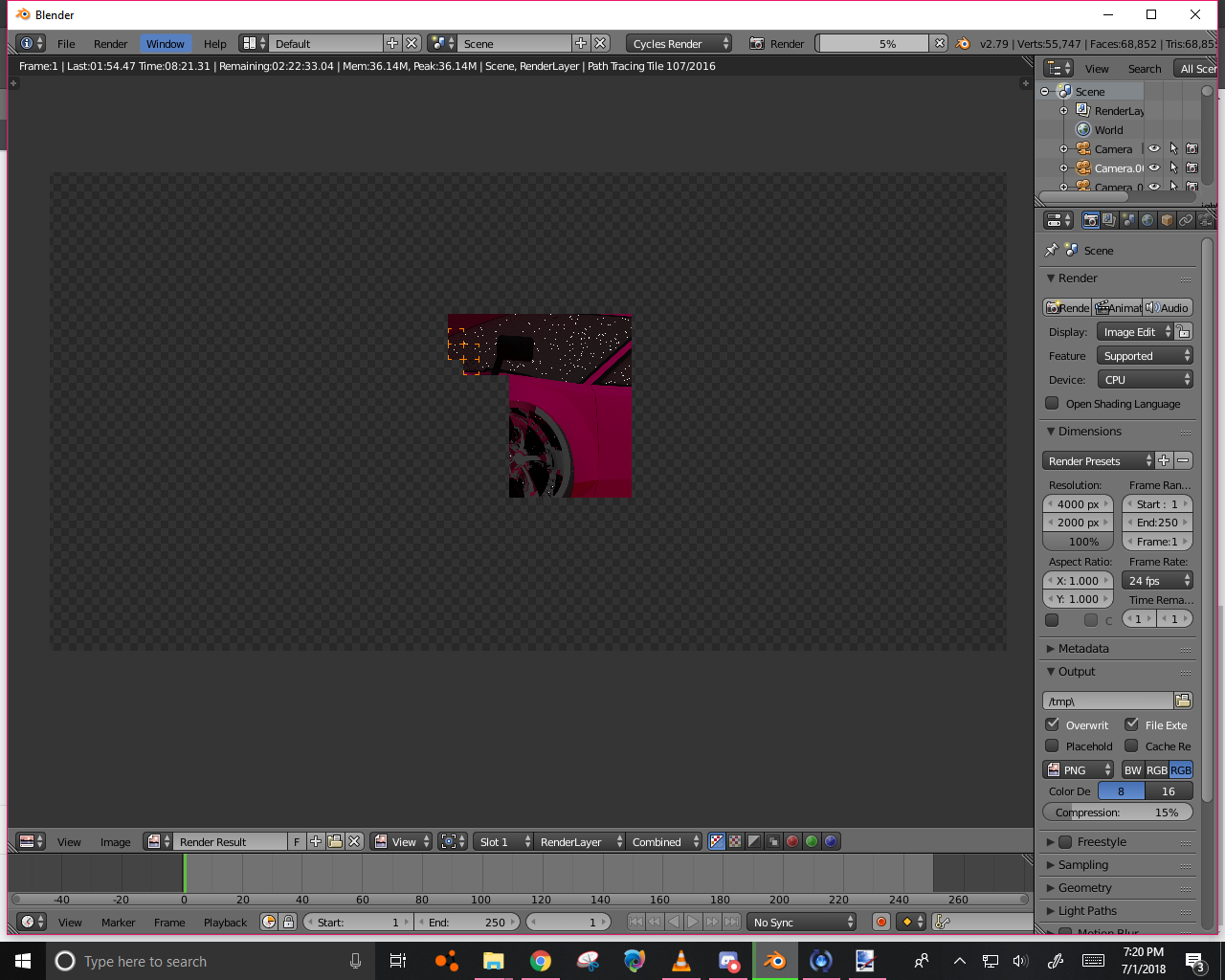 if you have a gpu set it to gpu rendering and change tile size to 256 by 256 for your own sanity, if you only have cpu then set it to 16 by 16.