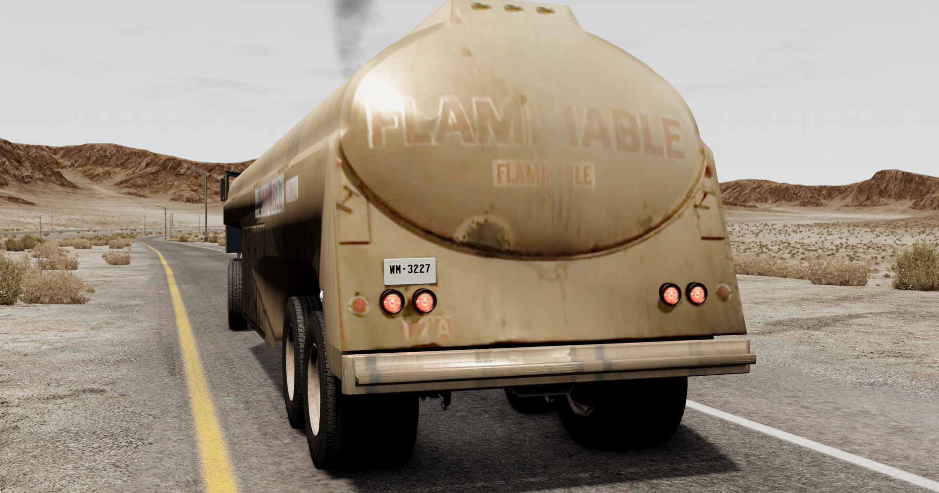 The tank is of poor quality and this tank has poor and unrealistic damage quality. It bursts like a plastic cup. I recoded jbeam license plate file, and installed the license plate on the tank where it belongs. --- Post updated --- On some maps The truck loads without a texture on the rear wheels. If you clear the game's cache,then the game deletes your truck as an extra file. Please, modify the tank so that different license plates can be installed on it in the setting.