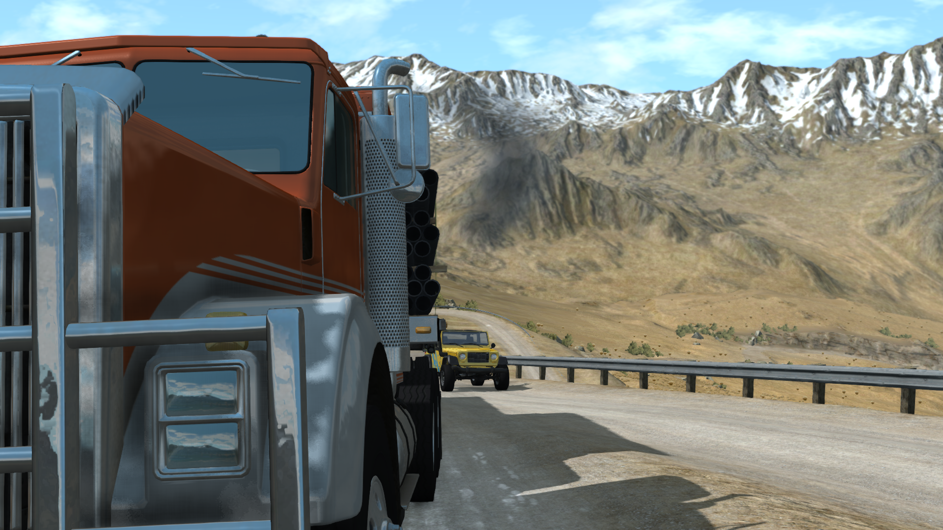 "No time for lengthy explanations. You have to reach the other side of the dam before the truck, by any means nessecary!" This is a scenario for the new Automation map, featuring a custom Hopper as your car, and a huge semi-trailer with custom .lua code as your opponent, in a race to the dam's other side. Does driving the hopper sound like an unfair advantage? Don't you worry, son. You are going to drive up... another path.... he he heeeee... and he thought that driving the hopper is an advantage.... he heee heeee..... Anyway, It took me ages to get the .lua working and the timing just right, so I really hope you enjoy this one! For some reason the .lua doesn't work perfectly. Restart the scenario if the truck isn't driving by itself, it seems to fix it most of the time Spoiler: cheat sheet