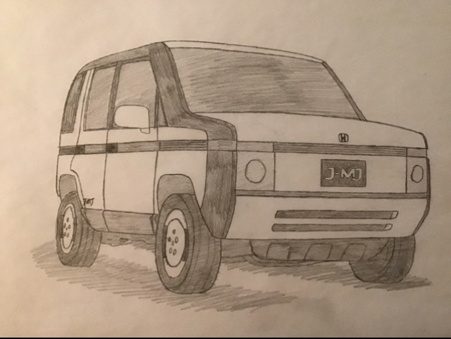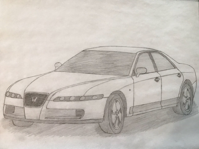 yes technically these aren't freehand or concepts [well two are] and i did them with my trace pad thing, but i figured I'd put them here anyway for people to enjoy, 1. 2023 honda civic type R, i made the H and R red for extra detail, 2.1990 honda NSX, one of my favorites, [btw these last two are honda concepts i found while researching the weird and different concepts that honda made in the 90s,] 3.1991 honda FSX, a sedan which to me looks suspiciously like a jaguar, but man i wish this could have made it to production, 4.1997 honda J-MJ, a weird but cool, land rover looking copy, with a honda badge on the front,