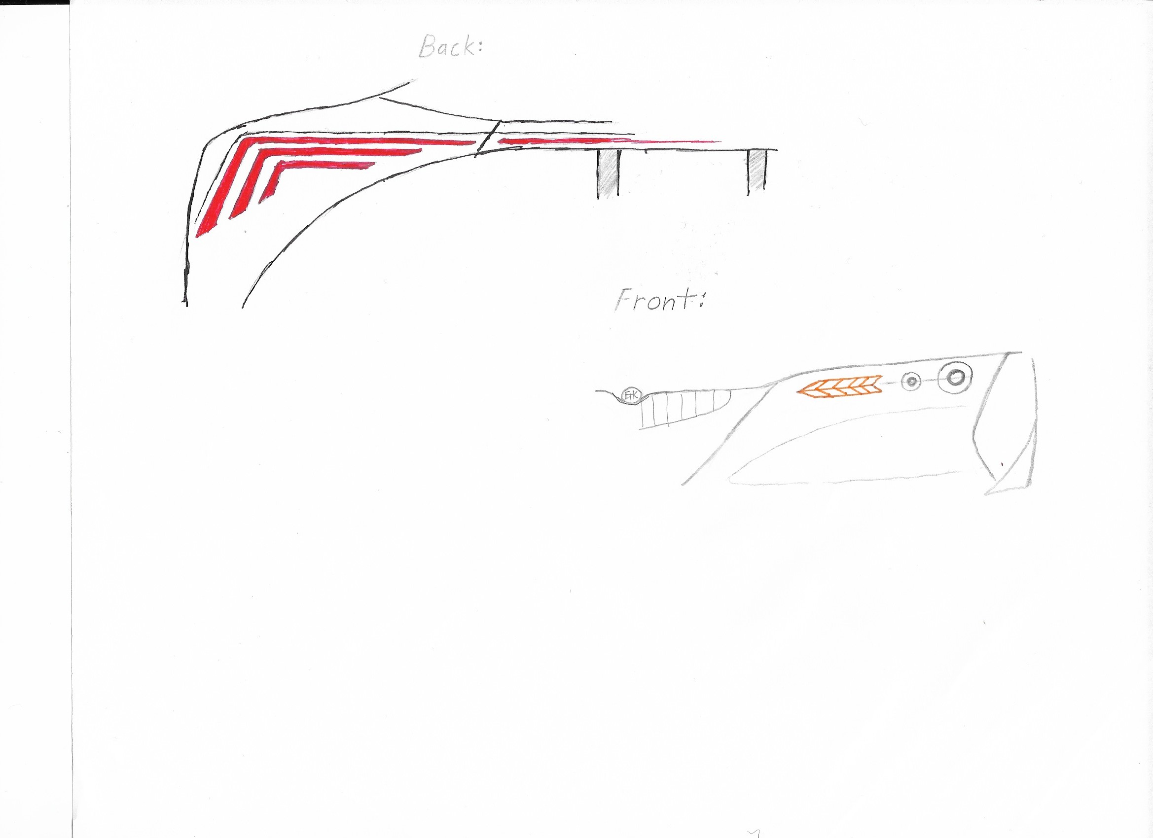 I'm trying to create a 3D model of the shell of the car, but it's coming along slowly, so i made a quick and slightly bad sketch of the basic look that i'm trying to go for. (i just realized that the line separating the bodywork from the wing in my sketch is tilted in a way that would not allow it to rise up. oops. I also only highlighted the first part because my hand was starting to shake :/ ) It will have a very low, w i d e, and aerodynamic look. I'm thinking that the tail lights will consist of 3 separate pieces on each side, each one kind of extruded out of the surface of the bodywork for an interesting 3D look. I'm sure you can tell that the tail lights and head lights especially are similar to the K Series. The center tail light will be part of a massive dynamic rear wing. It will look like the side of the car is kind of folded up and over the wheel arch and to the back of the car to create a flying buttress that flows into the tail lights and the rear wing. It's difficult to show this from a sketch, but hopefully you get the picture. I still have to learn more about jbeam, but maybe i could make the rear wing tilt according to the steering, kind of like this car? Remember, some stuff is still very subject to change. What are your thoughts on this design? Suggestions?