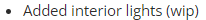 Parts menu does not work The same happens with the tuning menu --- Post updated --- Interior lights where? Speedometer lights seem weird