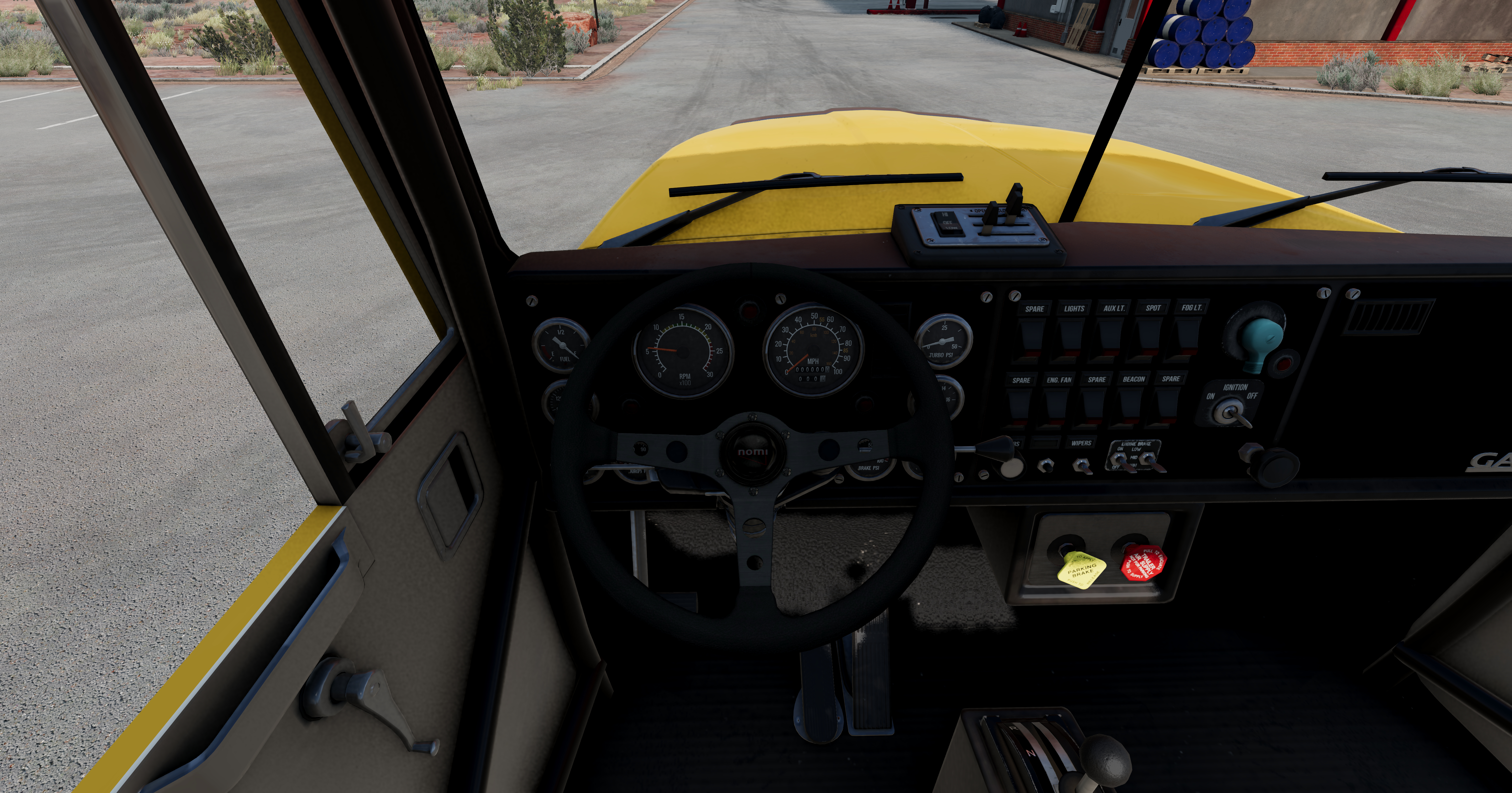 - Fixed Race Rollcage model and attached beams to rigidify the day cab - Added Cab Trim with cut out for Race Exhaust - Added OldStyle Horns - Fixed certain body colored parts that become a weird pastel mixture when using certain paint schemes. - Racing Seats can now have more than one color instead of a standard gray. (Blue, Green and Red) W.I.P - Added Nomi Mod.307R Race Steering Wheel