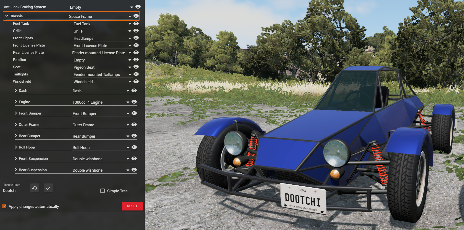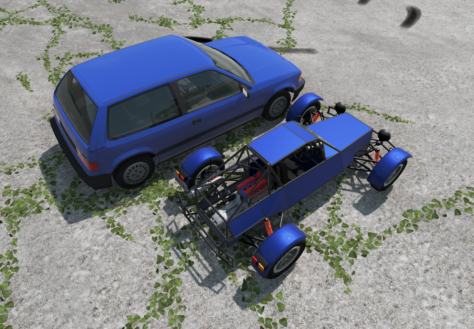 • Custom models and JBeam and reuse of existing parts: suspension, engine, gauges, headlights, etc