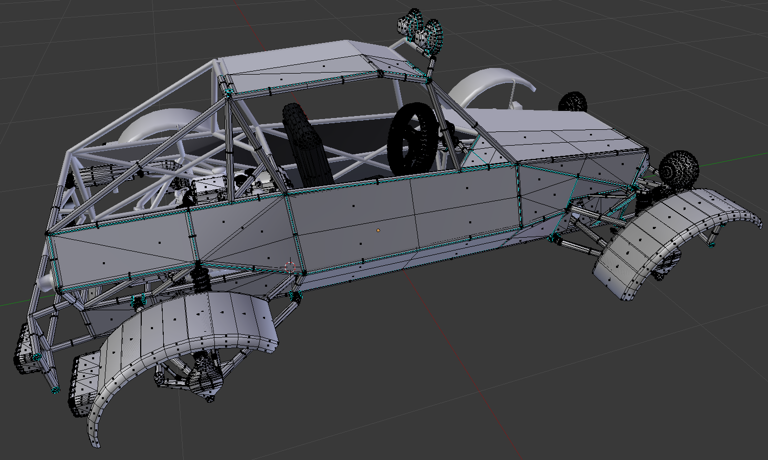 That's a really neat model ! The only things i see is that the panel could maybe be subdivided so that they can bend better, and the front headlights are horribly high poly.