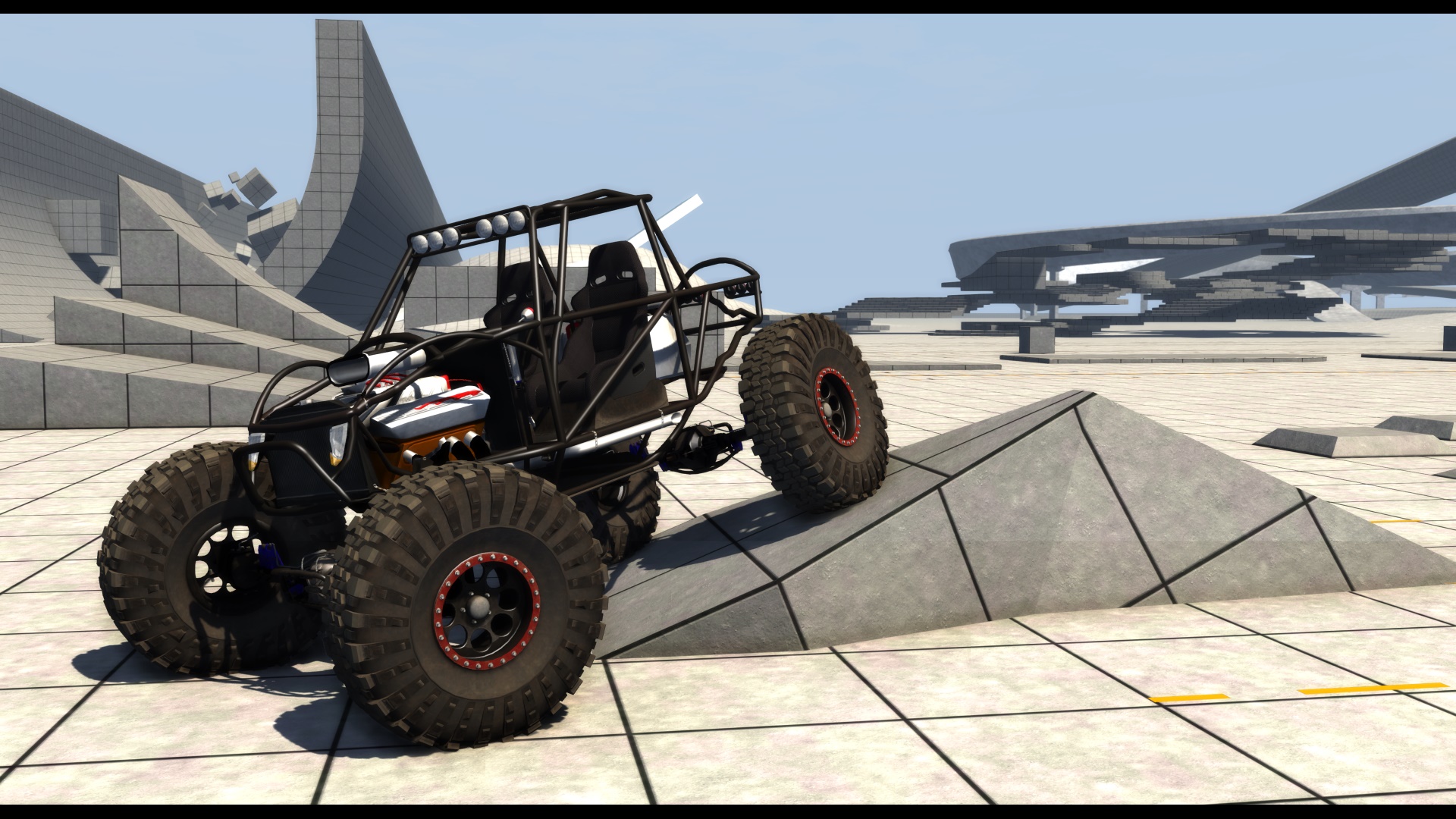 Ive gotten the motor/transmission set up and added the new pressure wheels. It crawls extremely well now, and the new pressure wheels are absolutely fantastic for it. Has nice low tire pressure with absolutely no wheel folding or breaking, i love it! the jbeam is now complete with stable values. Its very strong as it should be, but not indestructible either. It will bend and break from what i feel is realistic amounts of stress. Also the materials are set up correctly so you can change the color of the frame with the color selector now.