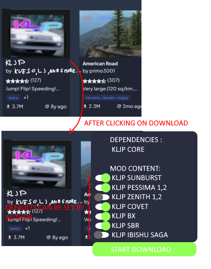 Also depending on the mod, a popup that says "X mod is required for this mod to function, download?" for stuff like KLJP so they dont ned to use the ingame messages to tell the user to download the core mod