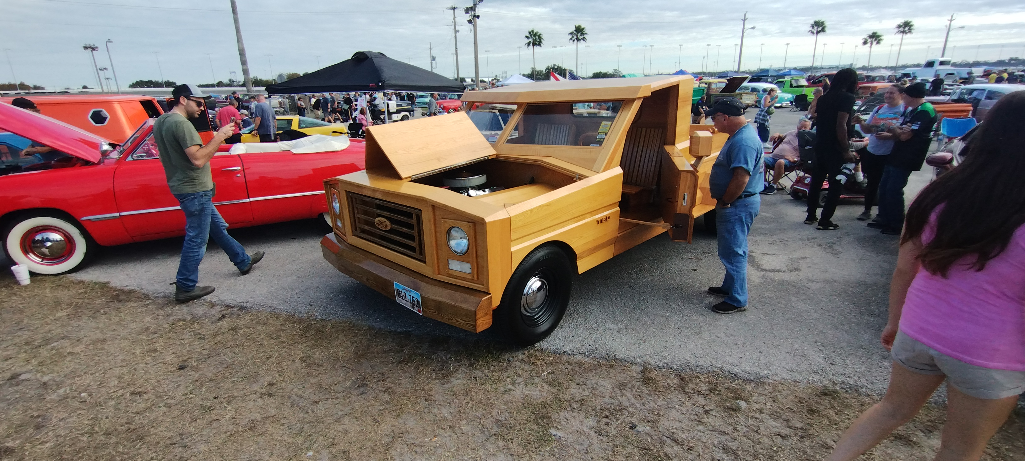 and a handcrafted wooden pickup truck that actually runs and drives: