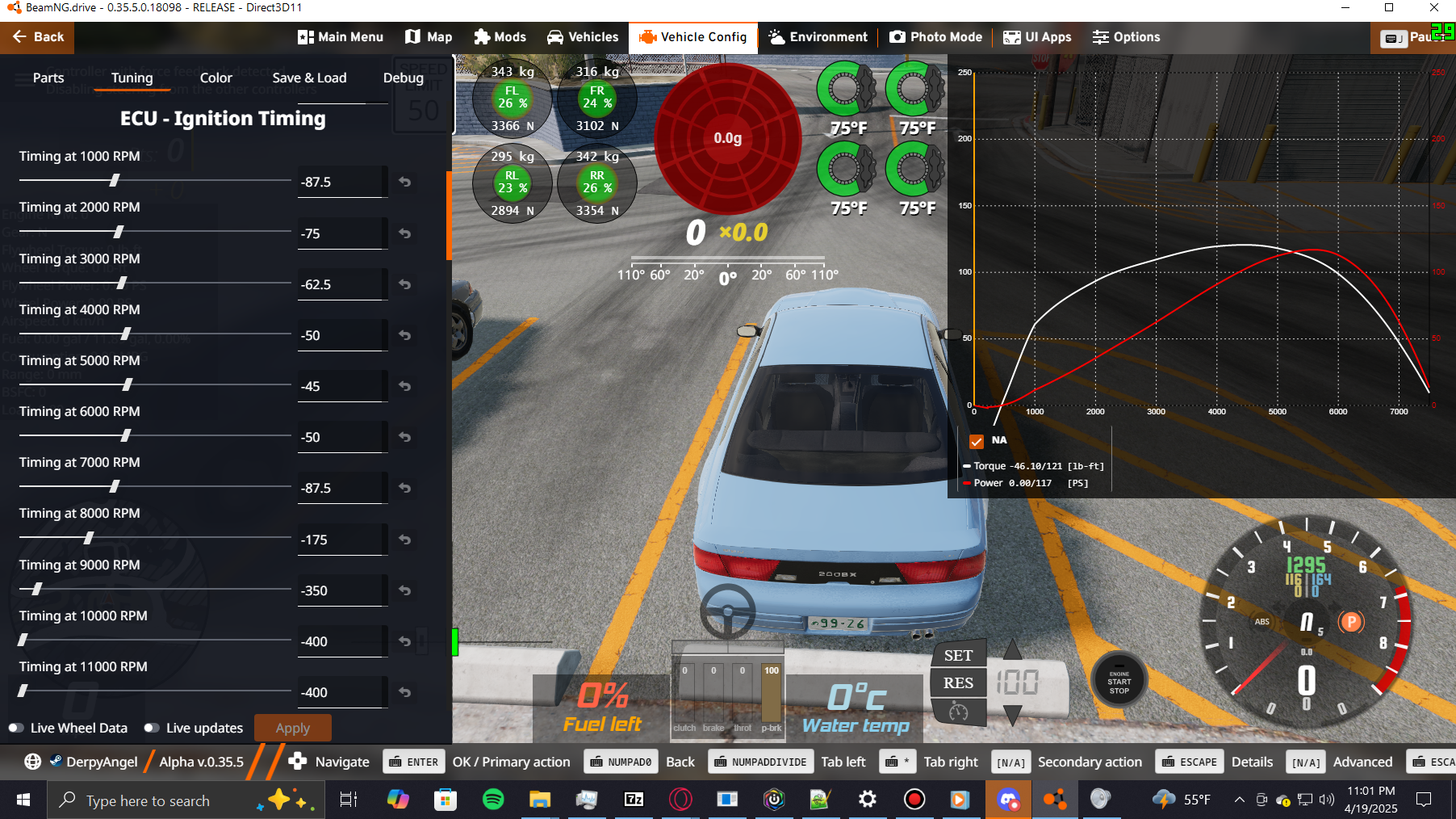 Noticed when trying to make a 2 valve/cylinder v6 it renders the custom ecu ignition mapping useless. It just defaults to some other ecu setting that has very different curve than what you'd expect based on how you have the ignition mapping set up. Pic 1 is using 2 exhaust valves and 1 intake valve with a rough draft of the ignition map I'm using. Pic 2 the only thing changed was the exhaust valve count. These are both using Sequential Fuel Injection.