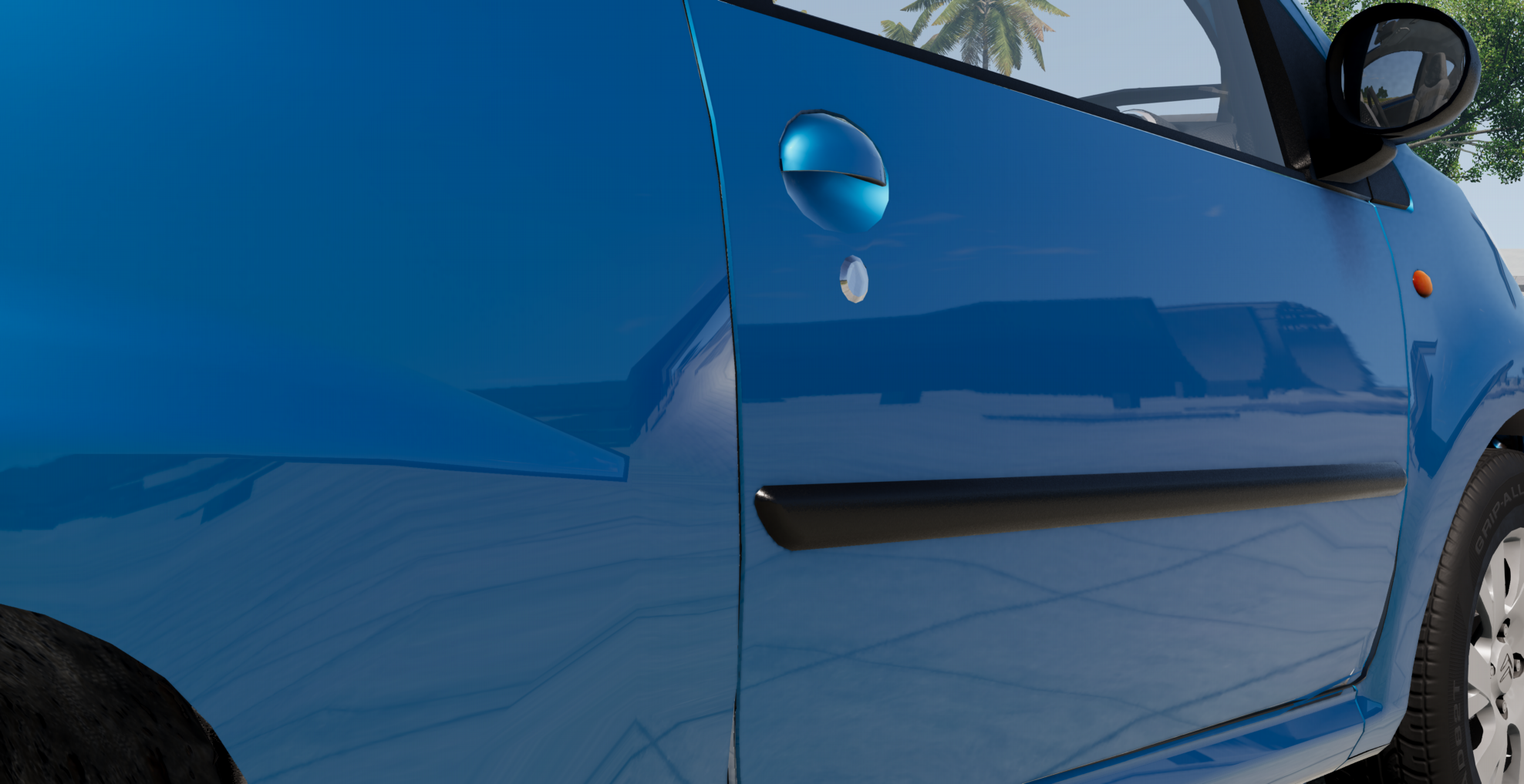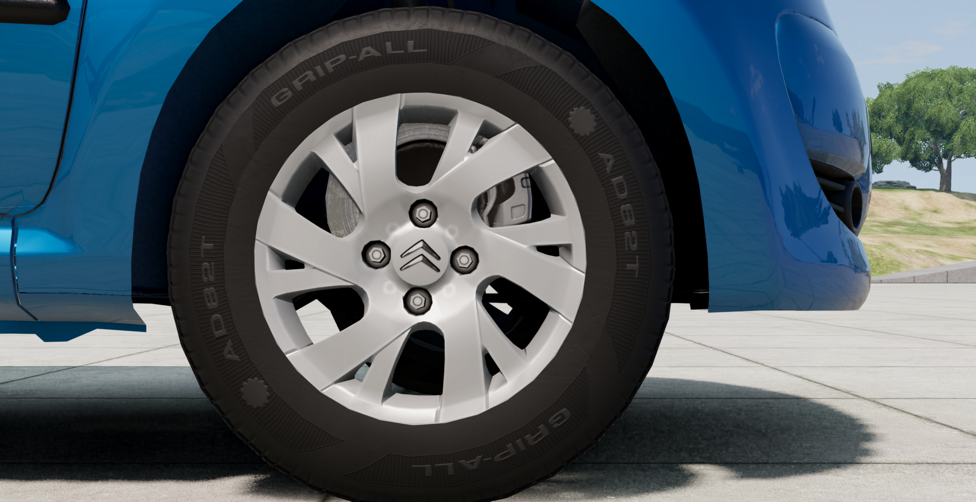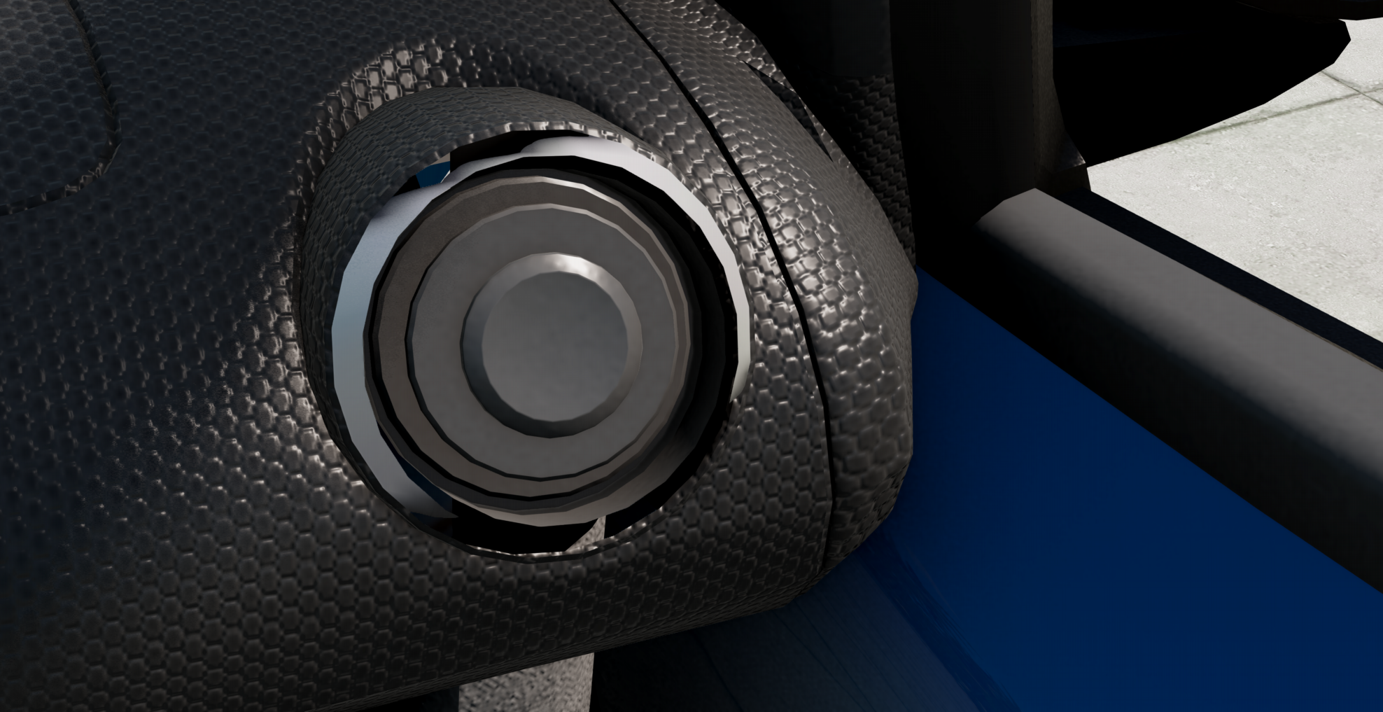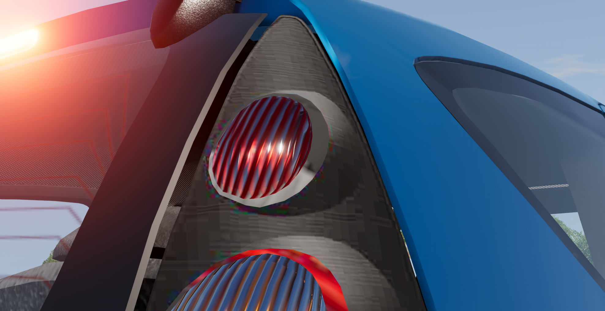 Interior...well, textures are better than expected, too bad about the badly positioned gauges as always. And that melted air vent. And every decal lighting up with the car lights. And the pedals being just a single texture only seen from one side...and more.