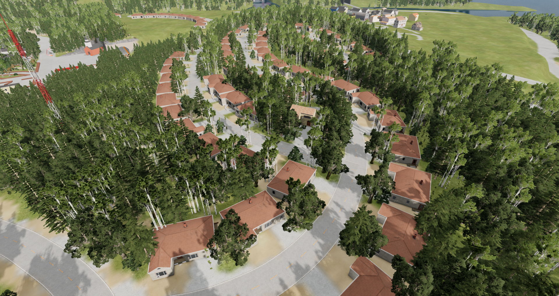 Progression update ADDED #more normal asphalt roads #more dirt back roads #more forests #more useable rail tracks #Long straight bridge #wind turbines #useable airport ------------------------ In progress #housing area #forest homes #fileds #abandond forest buildings #road side paths #road side signs